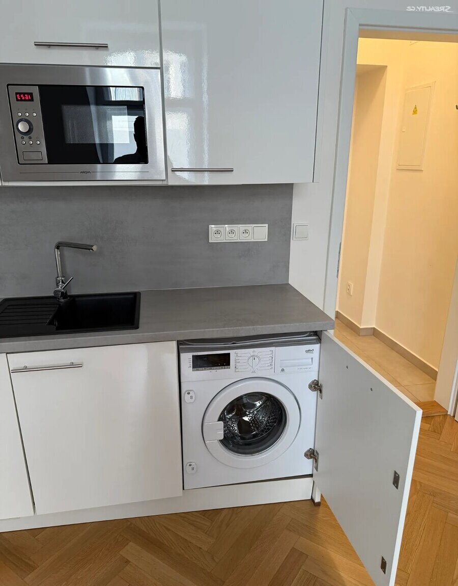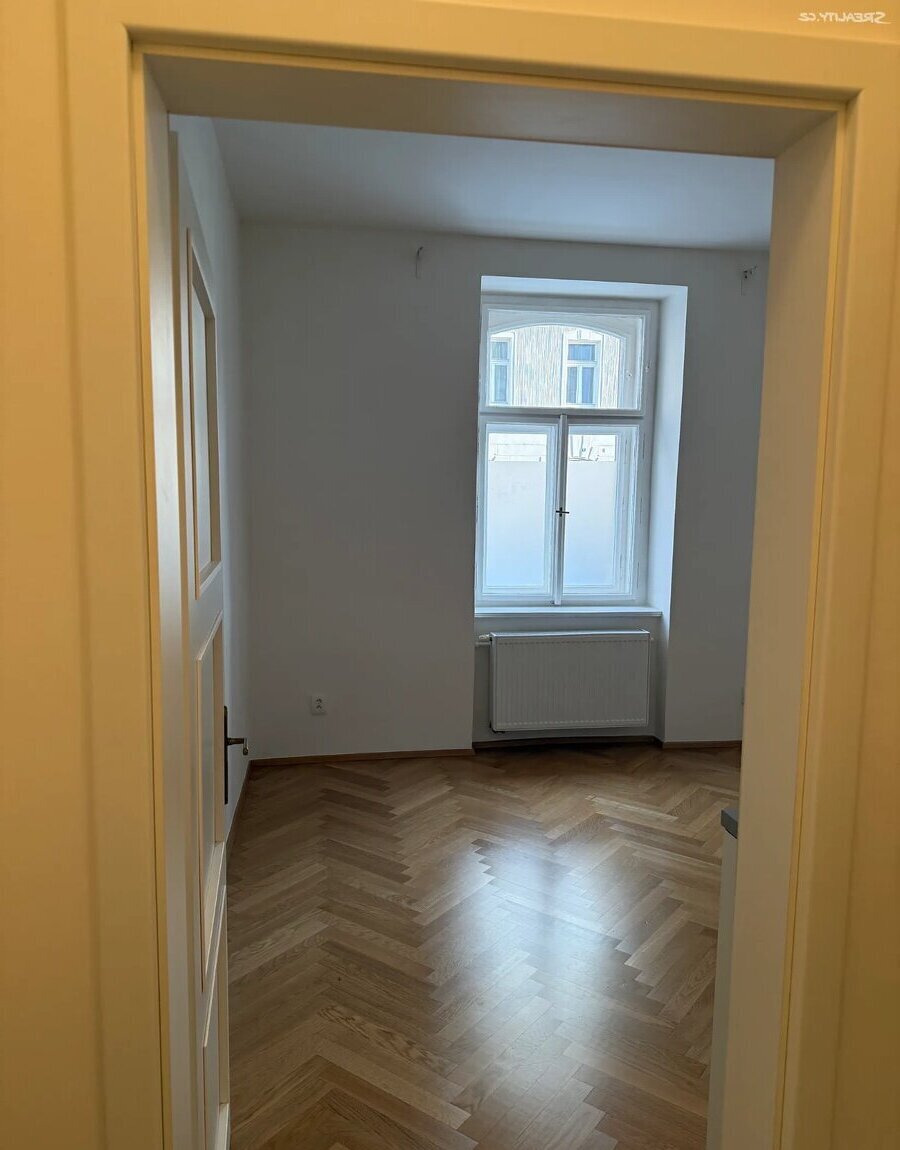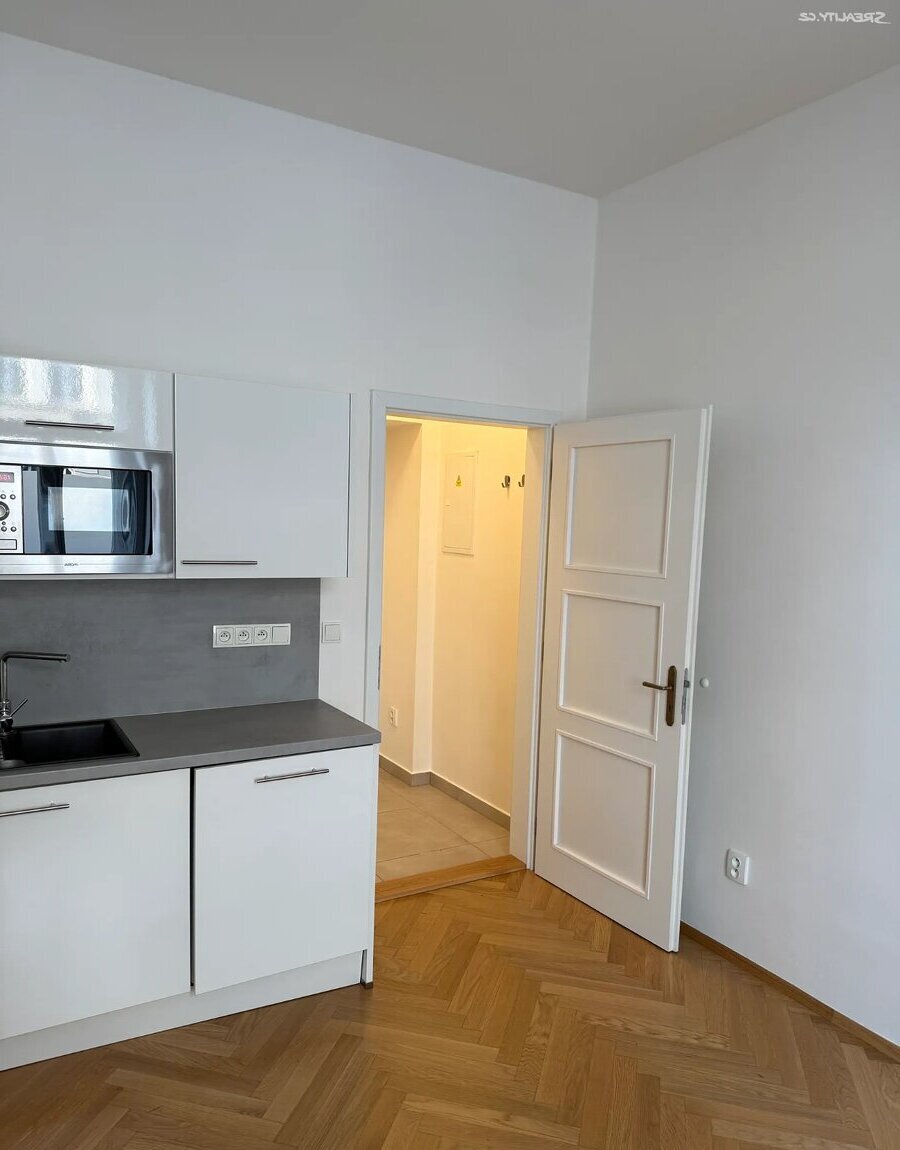 Byt po rekonstrukci, vysoké stropy, parkety, špaletová okna a kuchyň na míru s vybavením (lednice, mikrovlnná trouba, varná deska, digestoř). K dispozici je i sklepní kóje.