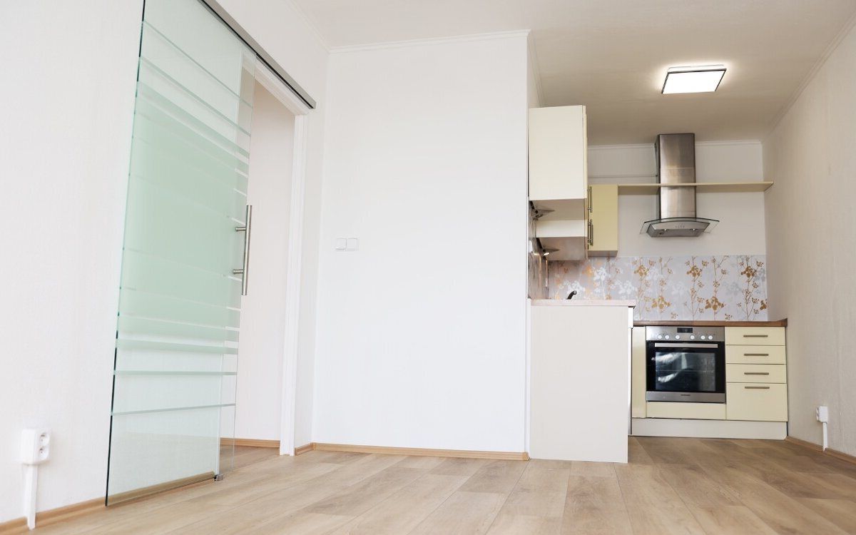 Nová elektroinstalace, rozvody vody, podlahy i dveře. Ponechána původní kuchyňská linka, sporák s varnou deskou a myčka – vše funkční a v dobrém stavu.