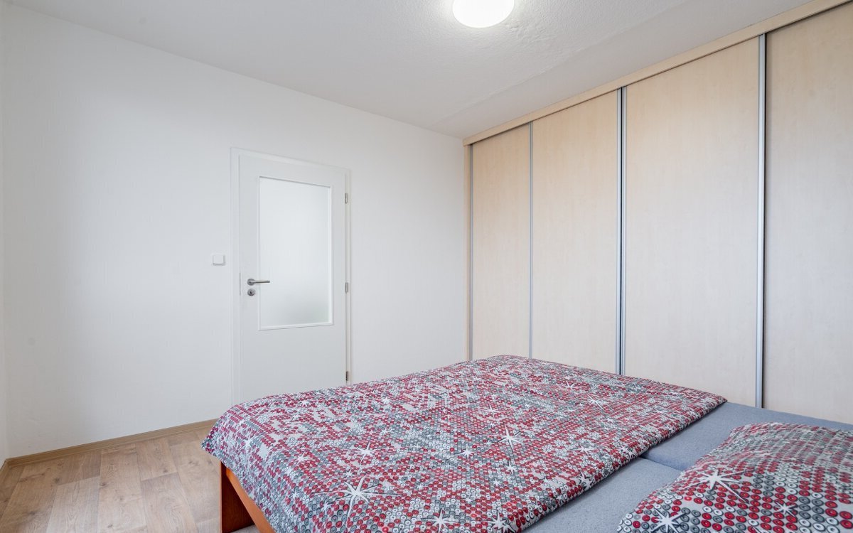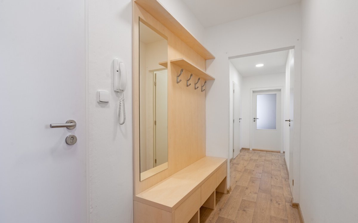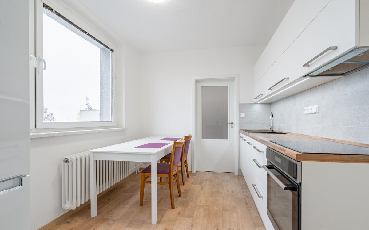V kuchyni je trouba, indukční varná deska, digestoř a myčka nádobí šíře 45 cm. V ložnici a v předsíni jsou na míru vyrobené vestavěné skříně. Po dohodě lze ponechat i lednici a pračku. K bytu náleží balkon, dvě prostorné komory a sklep.