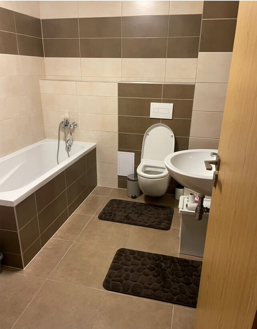 K pronájmu byt 2+kk o výměře 53 m2 s balkonem (3,6 m2), garážovým stáním a sklepní kójí (celkem 23 m2) ve 2. patře rezidenčního komplexu Hostivice-jih. Dispozice: z předsíně je vstup do koupelny s vanou a společným WC, dále do jihozápadně orientovaného obývacího pokoje s balkonem a kuchyňským koutem vybaveným vestavěnými spotřebiči Beko. Z obývací části je průchod do ložnice. V obývacím pokoji i ložnici je instalovaná klimatizace. Lokalita: projekt leží na rozhraní katastrů Chýně, Chrášťany a Hostivice, v rovinatém terénu u přírodní památky Hostivické rybníky. Dopravní dostupnost na metro B Zličín zajišťují autobusy ze zastávky Chýně Žitná nedaleko domu. Škola, školka, restaurace a menší obchody jsou v sousední Chýni (včetně nové školy), kompletní občanská vybavenost je v centrální části Hostivic.