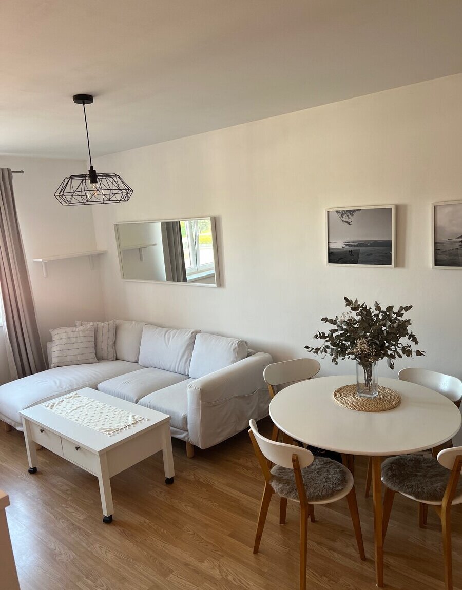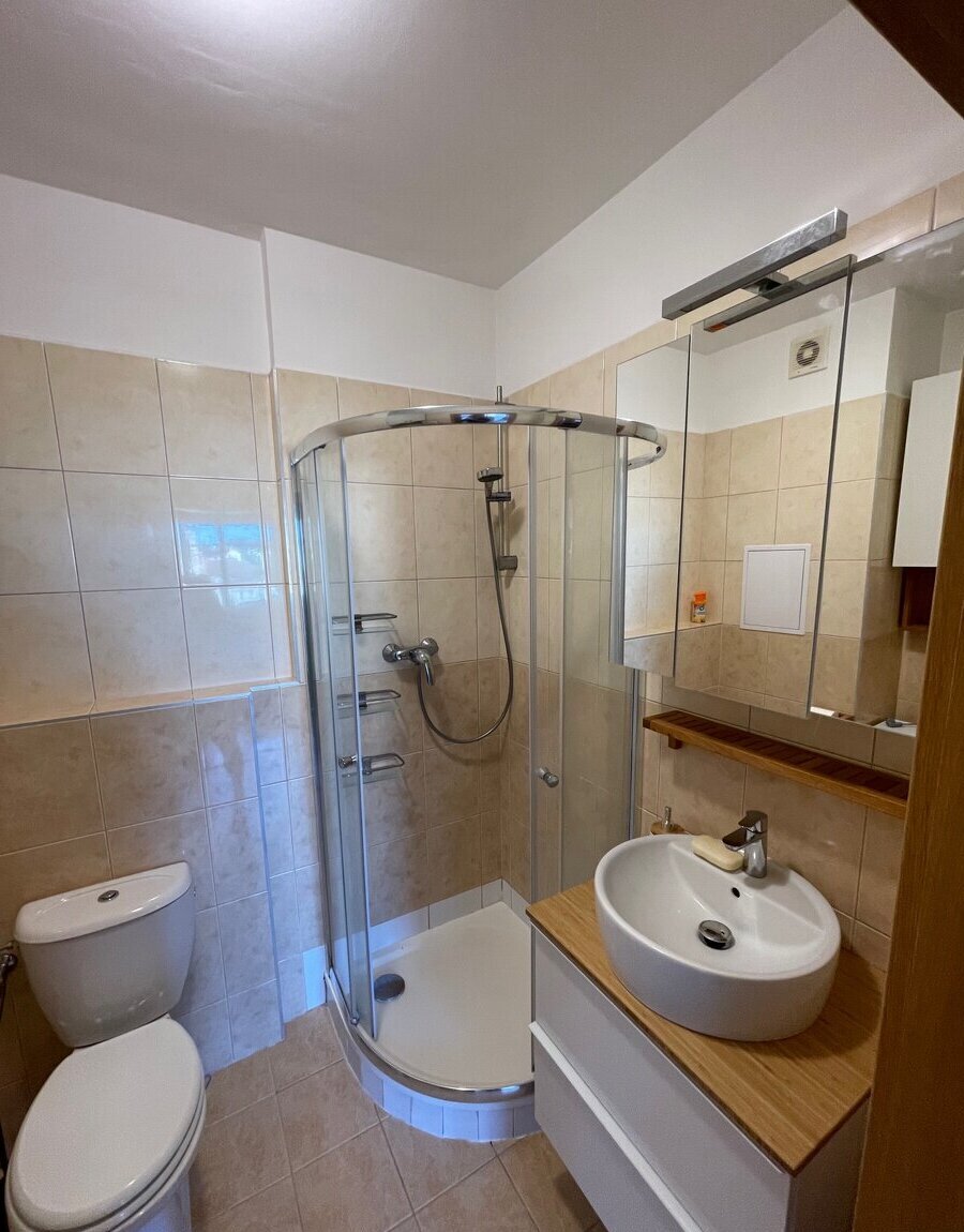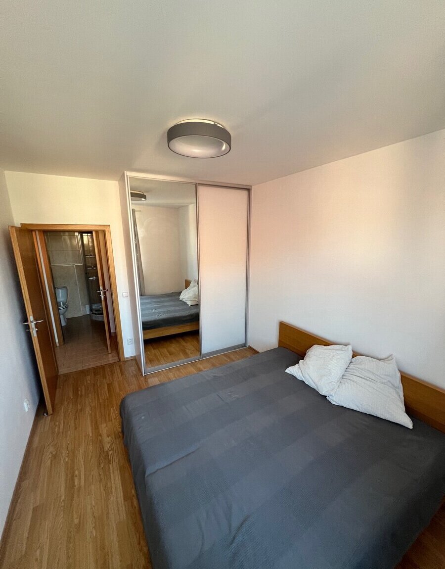 Dispozice zahrnuje obývací pokoj s kuchyňským koutem, samostatnou ložnici, koupelnu a dostatek úložných míst. Byt je kompletně zařízen a připraven k okamžitému nastěhování.