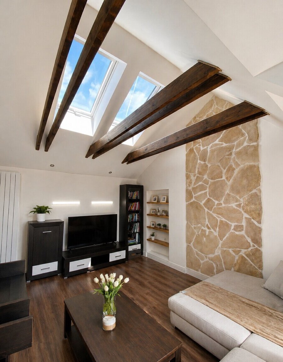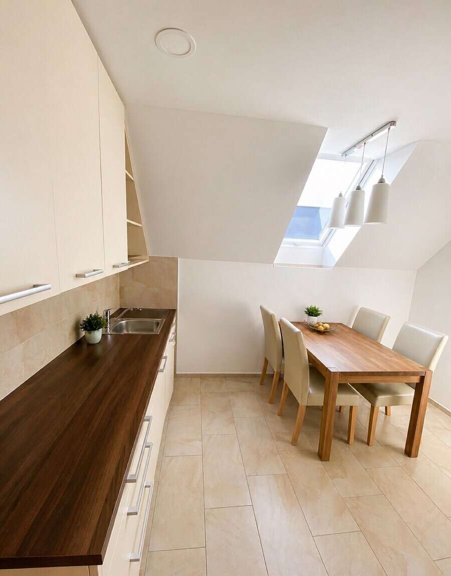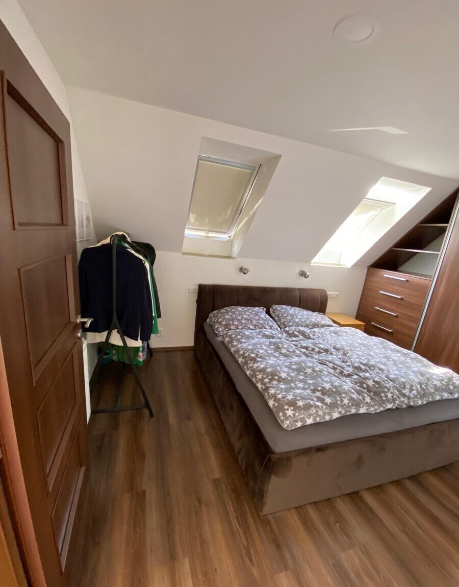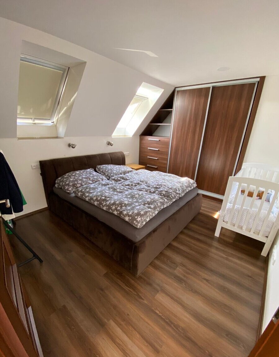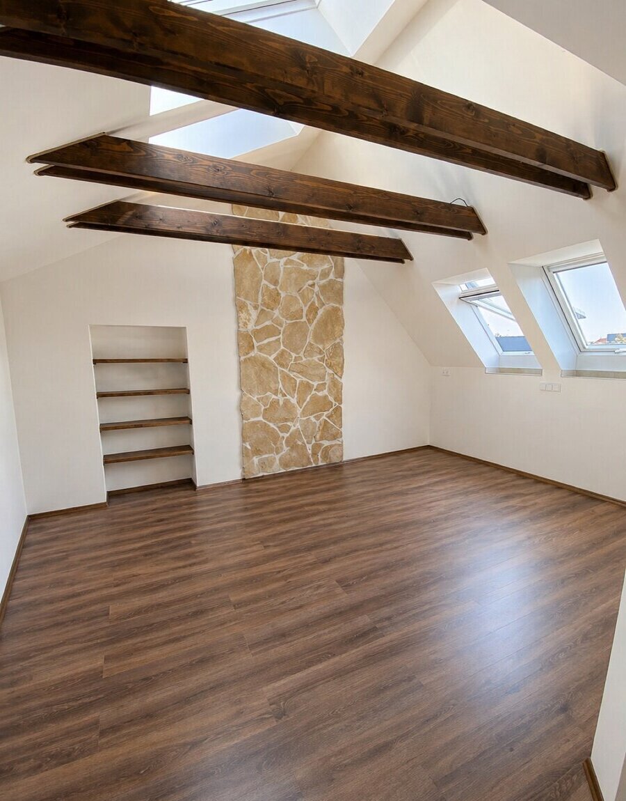 nabízím k pronájmu prostorný, světlý byt 2+1 o ploše 68 m², umístěný v podkroví rodinného domu.
