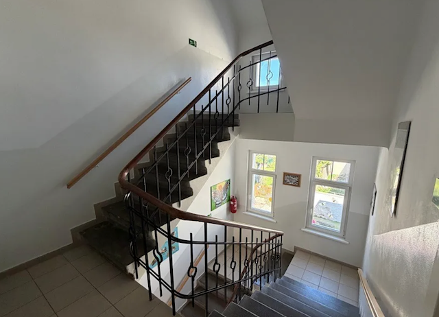 Byt je umístěn ve 3. nadzemním podlaží domu bez výtahu. K dispozici je také prostorný sklep o velikosti přibližně 8 m². V domě jsou pouze tři bytové jednotky.
