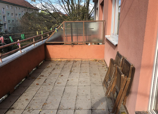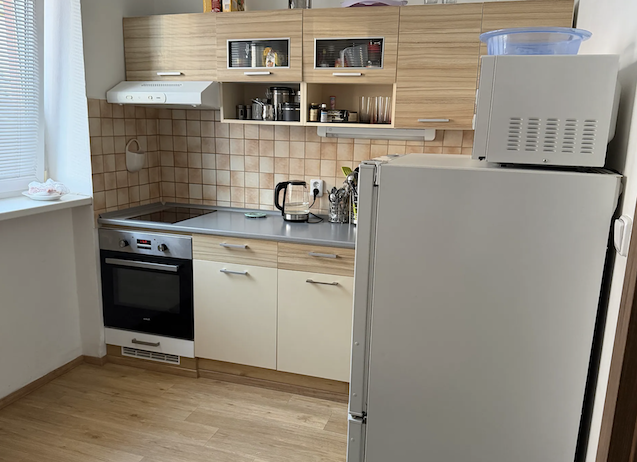 Umístěn je v 1. patře a nabízí prakticky řešený interiér. Velkým benefitem je terasa o velikosti 16 m², která se hodí k odpočinku i posezení s přáteli. Nastěhování je možné od května 2026. Byt je částečně vybavený. Na chodbě je vestavěná skříň, v obývacím pokoji televizní stolek s televizí, v koupelně pračka a v kuchyni samostatně stojící lednice.