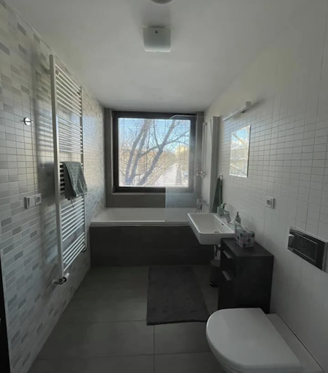 Nachází se v moderním bytovém domě, který má k dispozici také vlastní zahradu pro obyvatele.