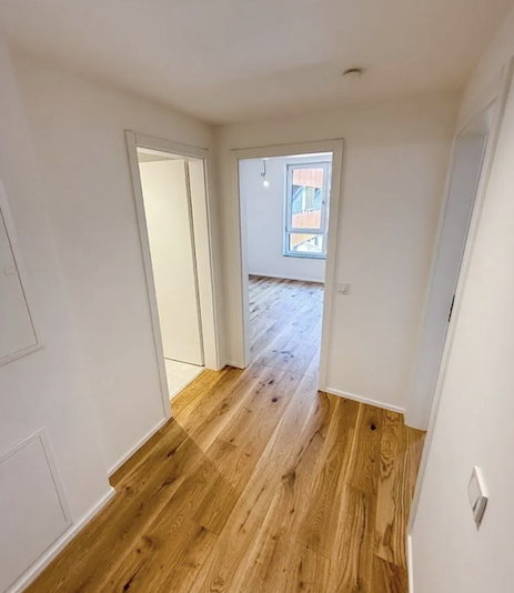 Dispozice bytu je řešena v minimalistickém stylu s důrazem na kvalitní materiály, jako jsou třívrstvé dřevěné podlahy nebo terrazzo obklady. Obývací pokoj s kuchyňským koutem nabízí kuchyňskou linku na míru v kombinaci bílé a dřeva, vybavenou spotřebiči značky Electrolux (trouba, mikrovlnná trouba, lednice, varná deska, myčka a pračka se sušičkou). Ložnice je vybavena prostornou vestavěnou šatní skříní. Koupelna je řešena v moderním stylu se sprchovým koutem a v předsíni se nachází další vestavěná skříň.