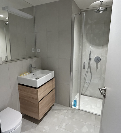 V bytě najdete rekuperaci, která zajišťuje čerstvý vzduch bez nutnosti větrání. Kuchyň je kompletně vybavená, k dispozici je varná deska, trouba s airgrillem, myčka i lednice s mrazákem. V domě funguje recepce nonstop. Byt má velká okna a dostatek světla během dne. Dispozice je dobře řešená, obývací část navazuje na kuchyňský kout i prostor pro spaní. Nechybí úložné prostory. Součástí je také sklep o velikosti 3,2 m² přímo v budově. Lze si pronajmout i garážové stání.