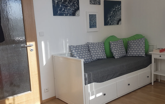 Stanice metra linky B, Luka je vzdálena zhruba 10 minut chůze, autobusová zastávka se nachází přibližně 2 minuty od bytu.