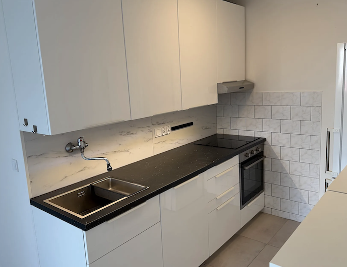 V roce 2023 prošel byt rekonstrukcí. Součástí je nová kuchyňská linka z Ikea vybavená indukční varnou deskou, troubou, myčkou a prostornou lednicí Siemens A+++ (výška 200 cm). Kuchyň nabízí dostatek úložného prostoru díky praktickým komodám se zásuvkami a nechybí ani velký, pohodlný dřez. Koupelna byla upravena již dříve, má zděné jádro a je plně funkční, doplněná o nové designové umyvadlo se skříňkou. K dispozici je pračka a úsporná sušička značky Miele. Na všech oknech jsou nově instalované vnitřní žaluzie.