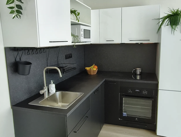 Byt je zařízen podle moderních standardů a nabízí vše potřebné pro pohodlné bydlení. K dispozici je pračka, myčka, trouba, lednice, digestoř, indukční varná deska i mikrovlnná trouba. Součástí je také sklep pro uložení věcí. Vhodný je pro jednotlivce, pár i menší rodinu, domácí mazlíčci nejsou překážkou. V domě jsou čtyři výtahy a nepřetržitá recepce. Z bytu je výhled na levý břeh Vltavy.
