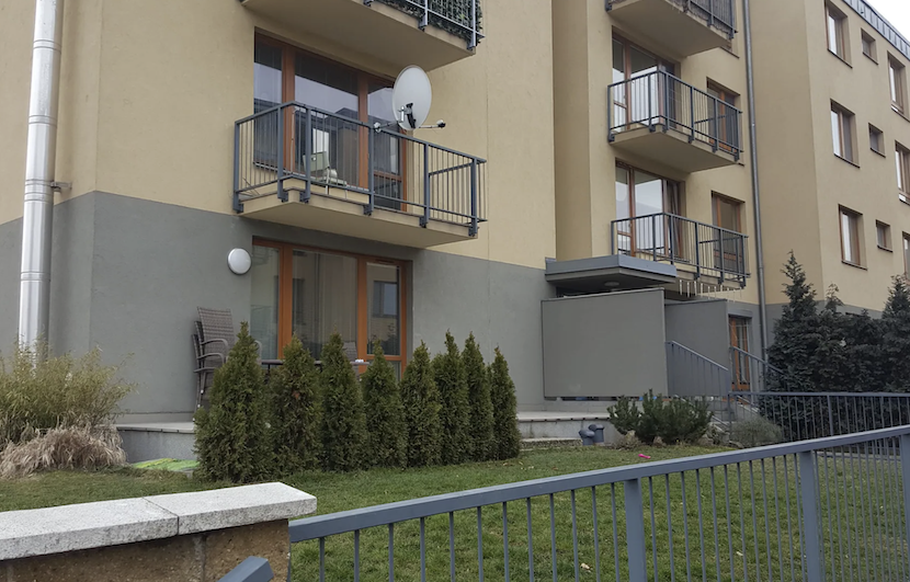 K bytu náleží také sklep o výměře 3 m². Na sklep navazuje garážové stání, které je dostupné jak výtahem, tak po schodišti. Možnost využití garáže je zahrnuta v pronájmu.