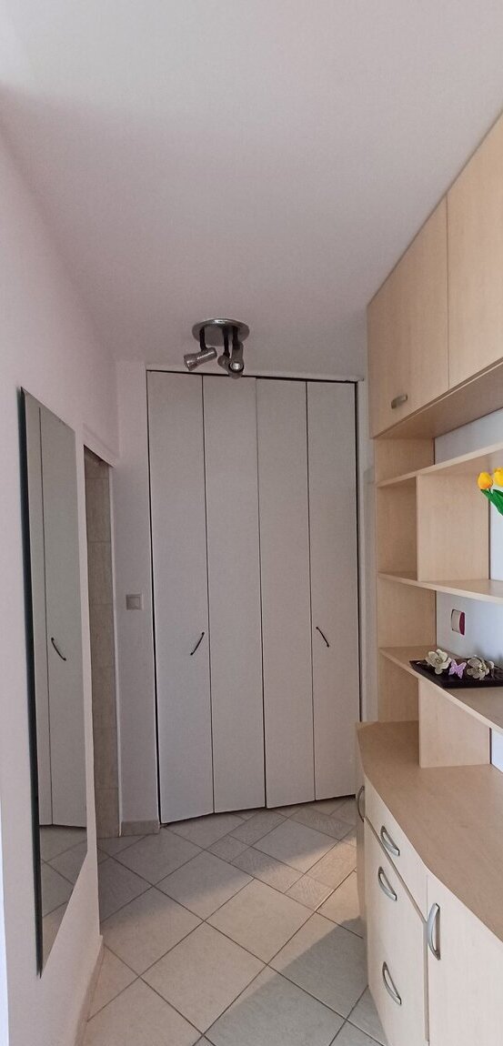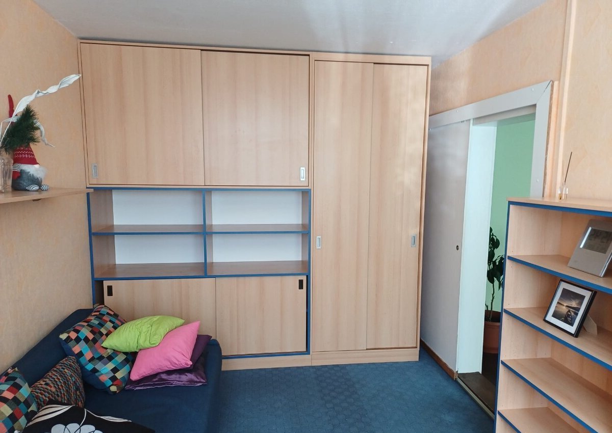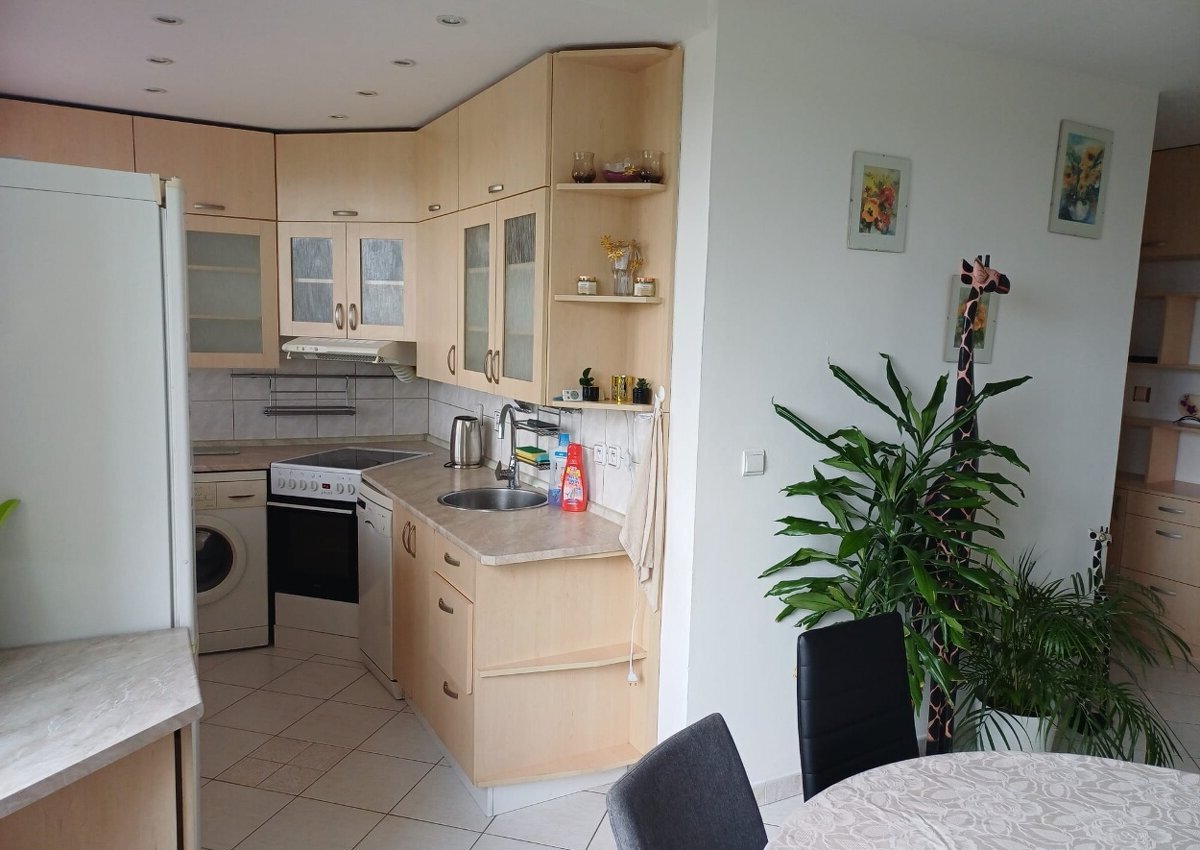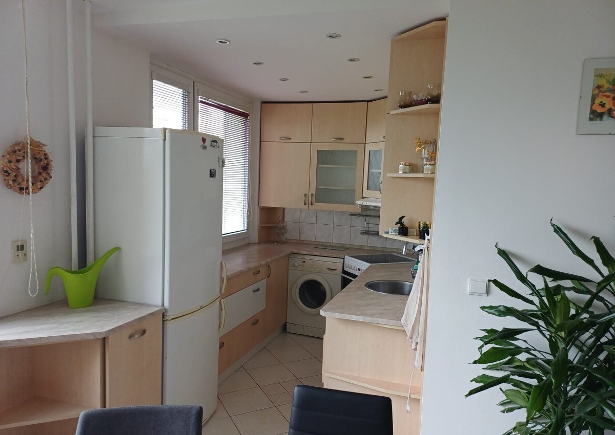 Kuchyň je kompletně vybavena (lednice, pračka, mikrovlnná trouba, myčka). V bytě zůstává také postel, sedačka, obývací stěna, jídelní stůl a dvě televize.
