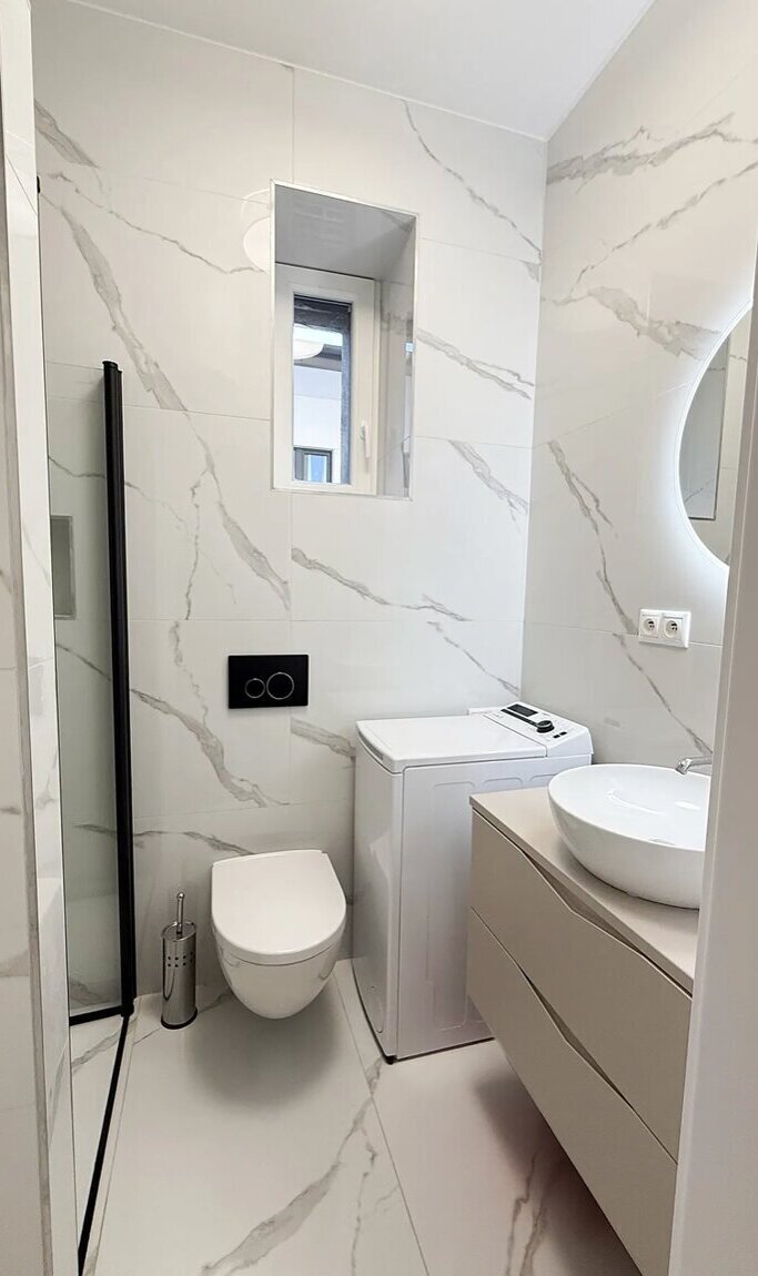 Nové elektroinstalace, podlahové vytápění, okna i vstupní dveře, čerstvé omítky, moderní koupelna a zcela nový nábytek vyrobený na míru.