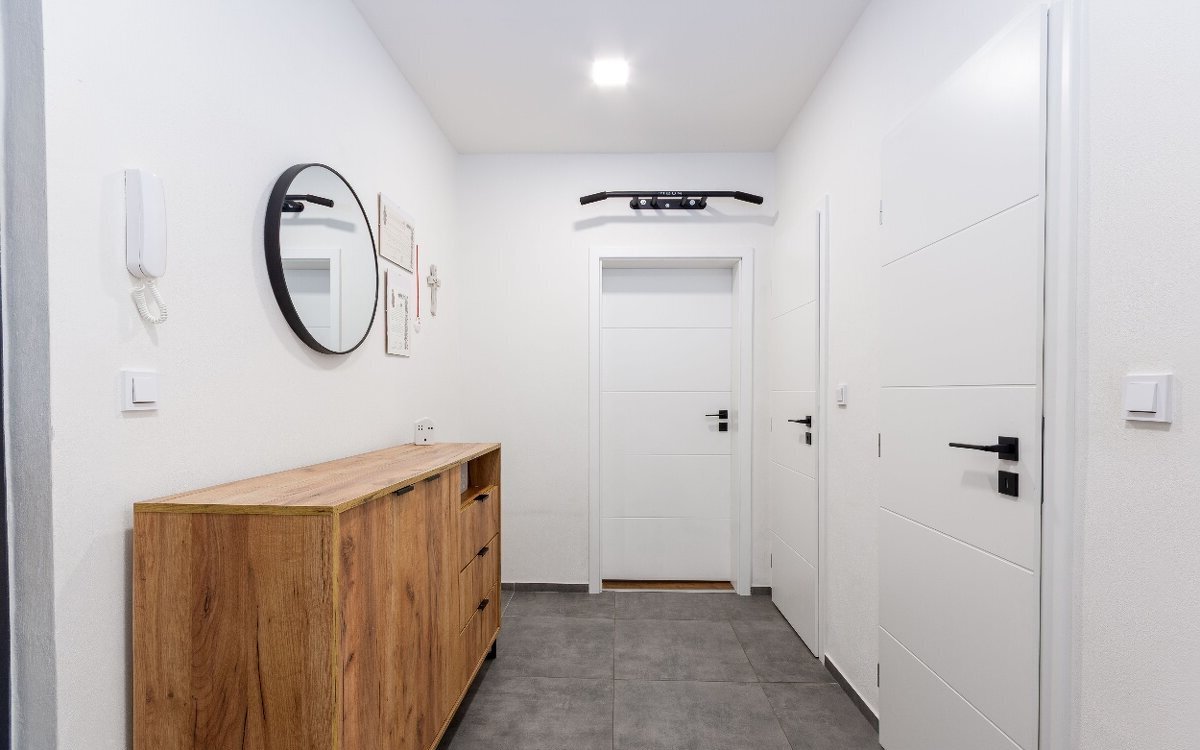Nejde o běžný panelový dům – vchod je kompletně po rekonstrukci a chodby v každém patře jsou modernizované. Čisté a upravené společné prostory svědčí o pečlivých a ohleduplných sousedech.