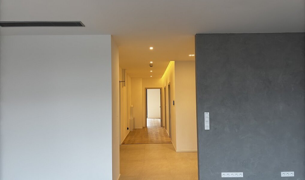 Vybavení: předokenní žaluzie, podlahové vytápění ve všech místnostech včetně koupelny. V obytných pokojích jsou dřevěné podlahy, v chodbě, šatně a koupelně moderní dlažba. Obývací pokoj s větší terasou je orientován na jihovýchod, ložnice s menší terasou na severozápad.