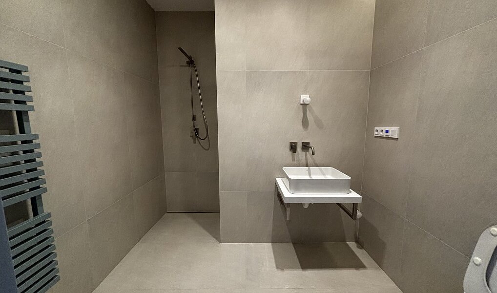 Dispozice zahrnuje světlý obývací pokoj s přípravou na kuchyňský kout a přímým vstupem na terasu vhodnou k odpočinku. Dále dva samostatné pokoje, oba s výstupem na druhou terasu orientovanou do klidného vnitrobloku, koupelnu se sprchou a toaletou. Praktickou součástí jsou také šatna a komora s dostatkem úložných míst.