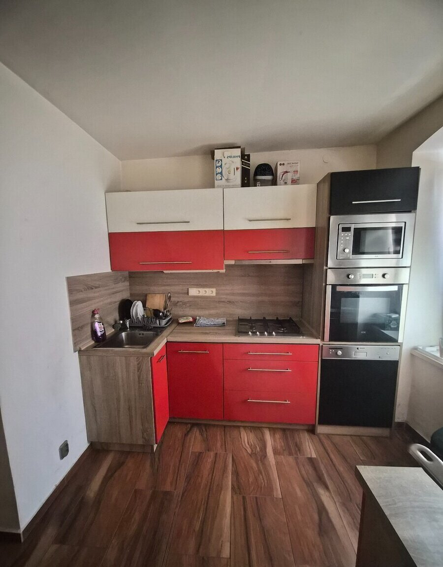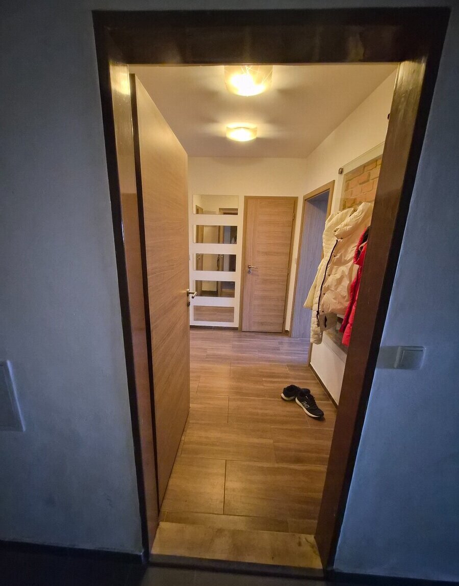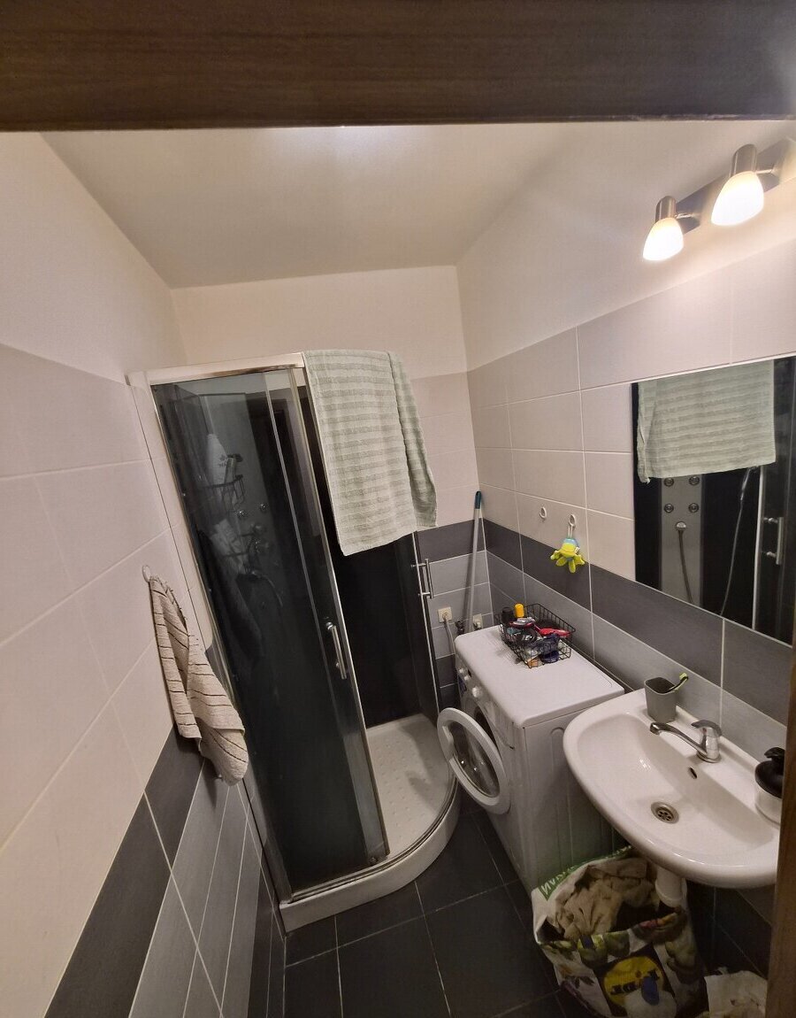 Dispozice: předsíň, kuchyň spojená s obývacím pokojem (kuchyňská linka se spotřebiči), jeden samostatný pokoj, koupelna se sprchovým koutem (k dispozici pračka) a samostatné WC.