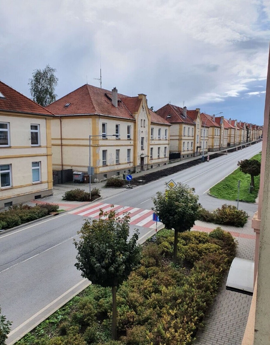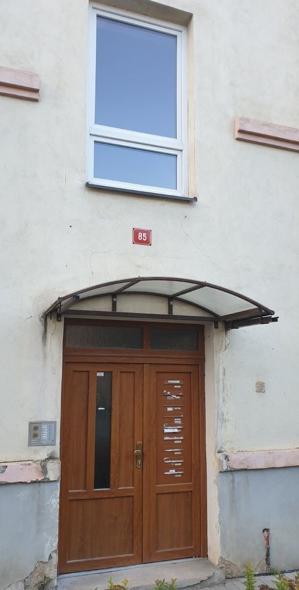 Nachází se ve 2. nadzemním podlaží cihlového domu a náleží k němu prostorný sklep 12,5 m².