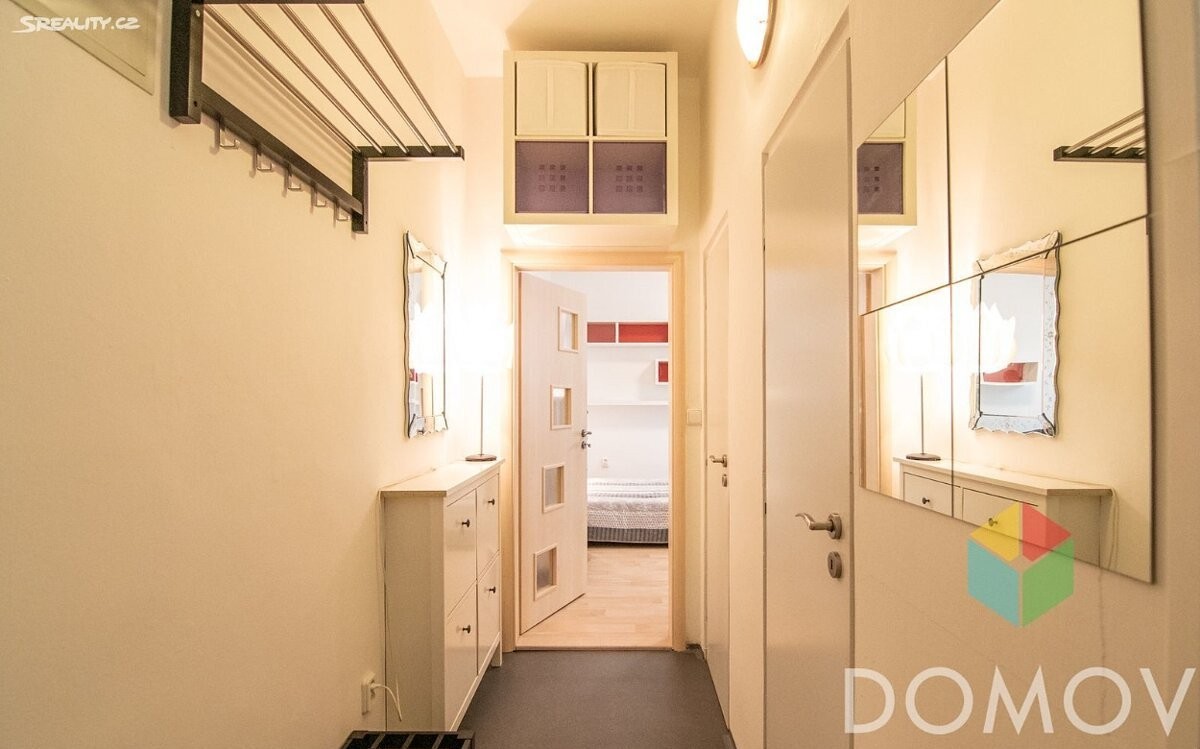 kuchyňská linka, plynový sporák, lednice, pračka, vana, svítidla, postel, sedačka, komoda, vestavěná skříň v chodbě, botník a další základní vybavení.