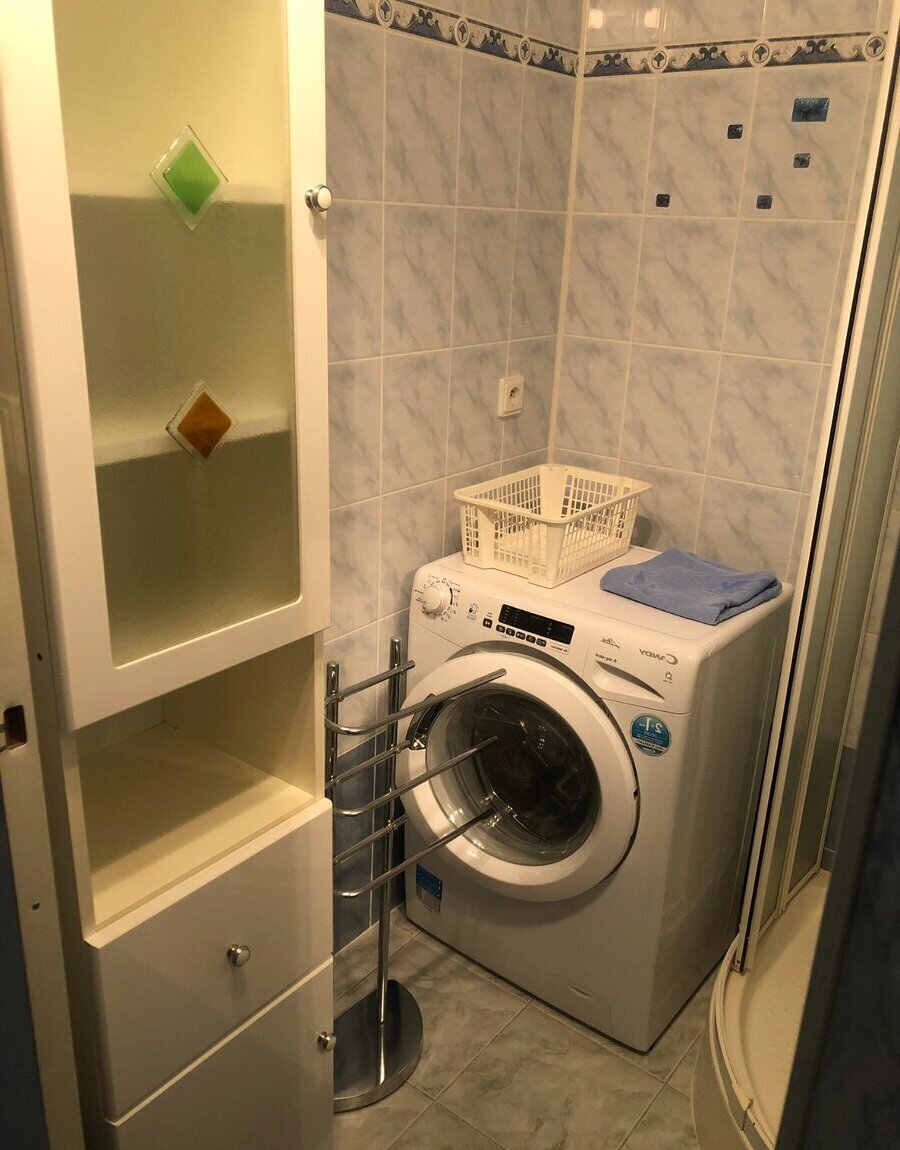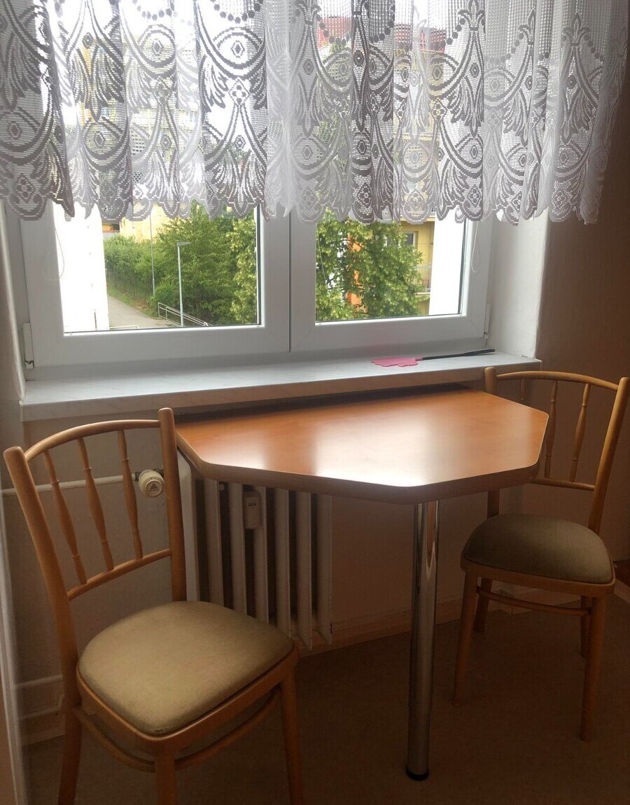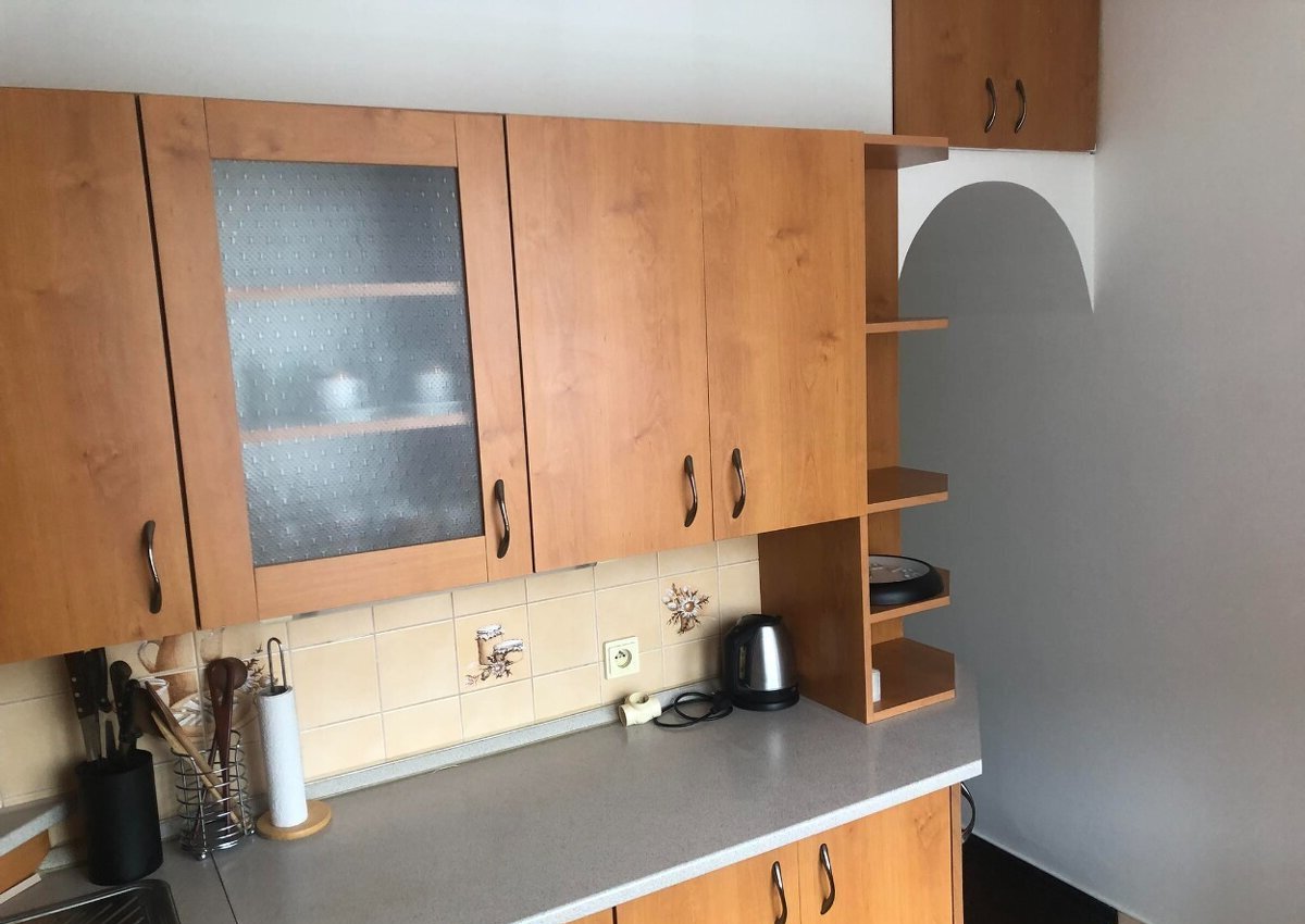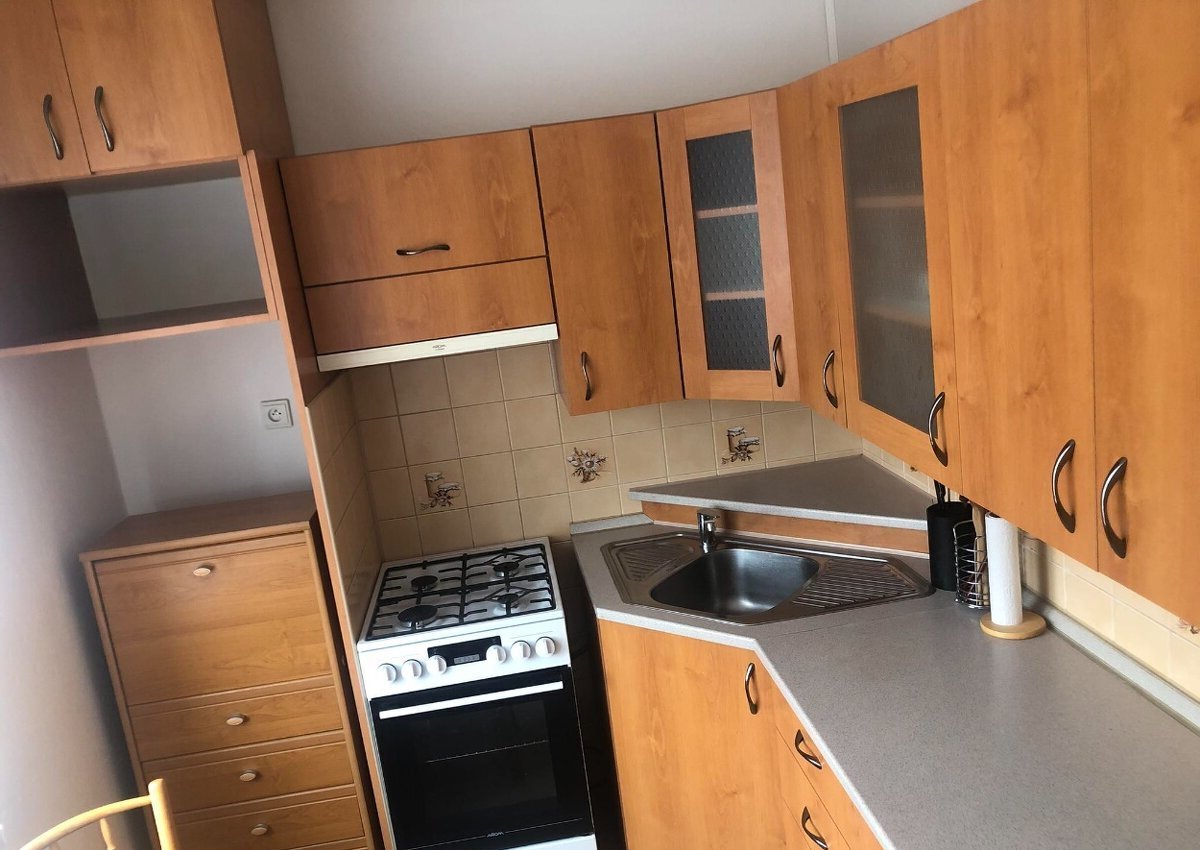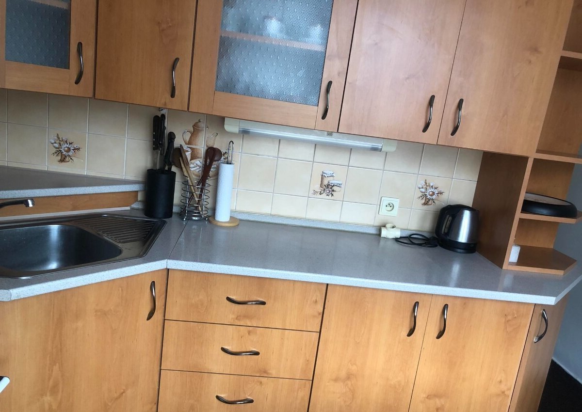 Byt je téměř kompletně zařízený (viz foto); chybí jen obývací stěna. K dispozici je kuchyňská linka, sporák, lednice, stůl se židlemi, pračka se sušičkou, sprchový kout, umyvadlo se skříňkou, zrcadlová skříňka, koupelnová skříň s úložným prostorem, botníková stěna, sedací souprava a konferenční stolek. Po dohodě je možné použít vlastní nábytek.