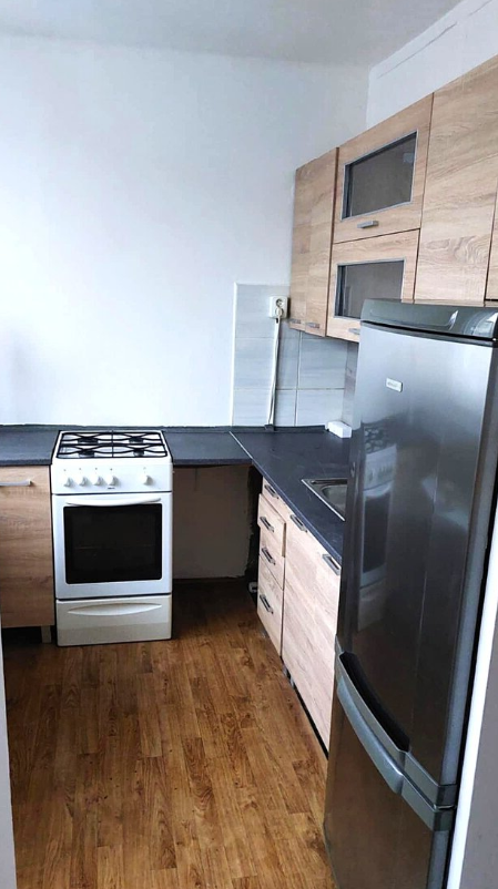 Byt má nová plastová okna a je kompletně zařízený. K dispozici je kuchyňská linka, sporák, lednice s mrazákem, gauč, postel, šatní skříň i pračka. Byt je připraven k okamžitému nastěhování.