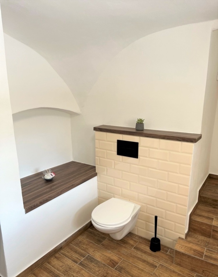 Přednosti: bezplatné parkování ve dvoře a možnost posezení na dvoře domu.