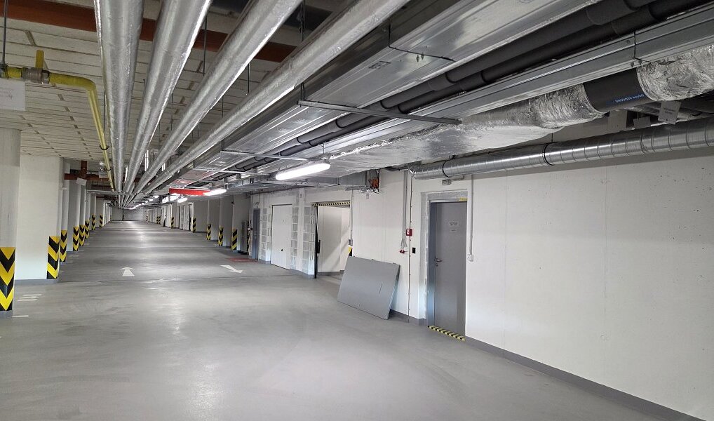 Výhodou je garážové stání v podzemní garáži, které zajišťuje bezpečné parkování.