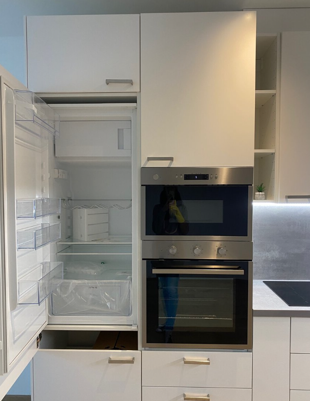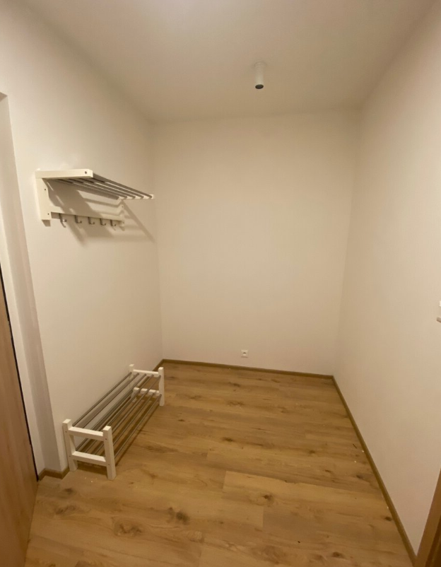 Byt tvoří prostorný hlavní obytný pokoj s kvalitní plovoucí podlahou, který je propojen s moderní kuchyňskou linkou vyrobenou na míru. Kuchyně je plně vybavena vestavnými spotřebiči, mezi které patří trouba, mikrovlnná trouba, indukční varná deska, digestoř a lednice s mrazákem. Koupelna je prostorná, laděná do elegantních šedých obkladů a disponuje vanou a toaletou. Součástí bytu je také balkon.