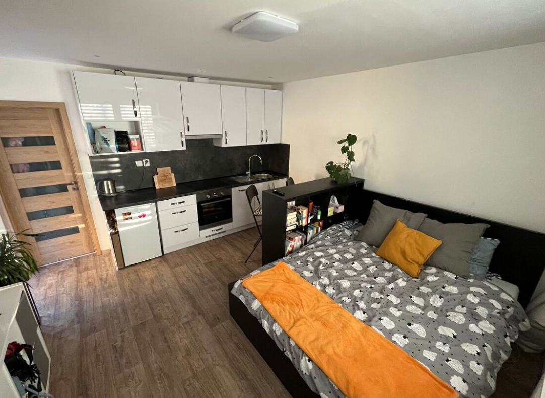 K pronájmu je nově zrekonstruovaný byt o dispozici 1+kk s přibližnou výměrou 28 m², který se nachází v ulici Zahradní v plzeňské části Slovany. Součástí bytu je také prostorná terasa.