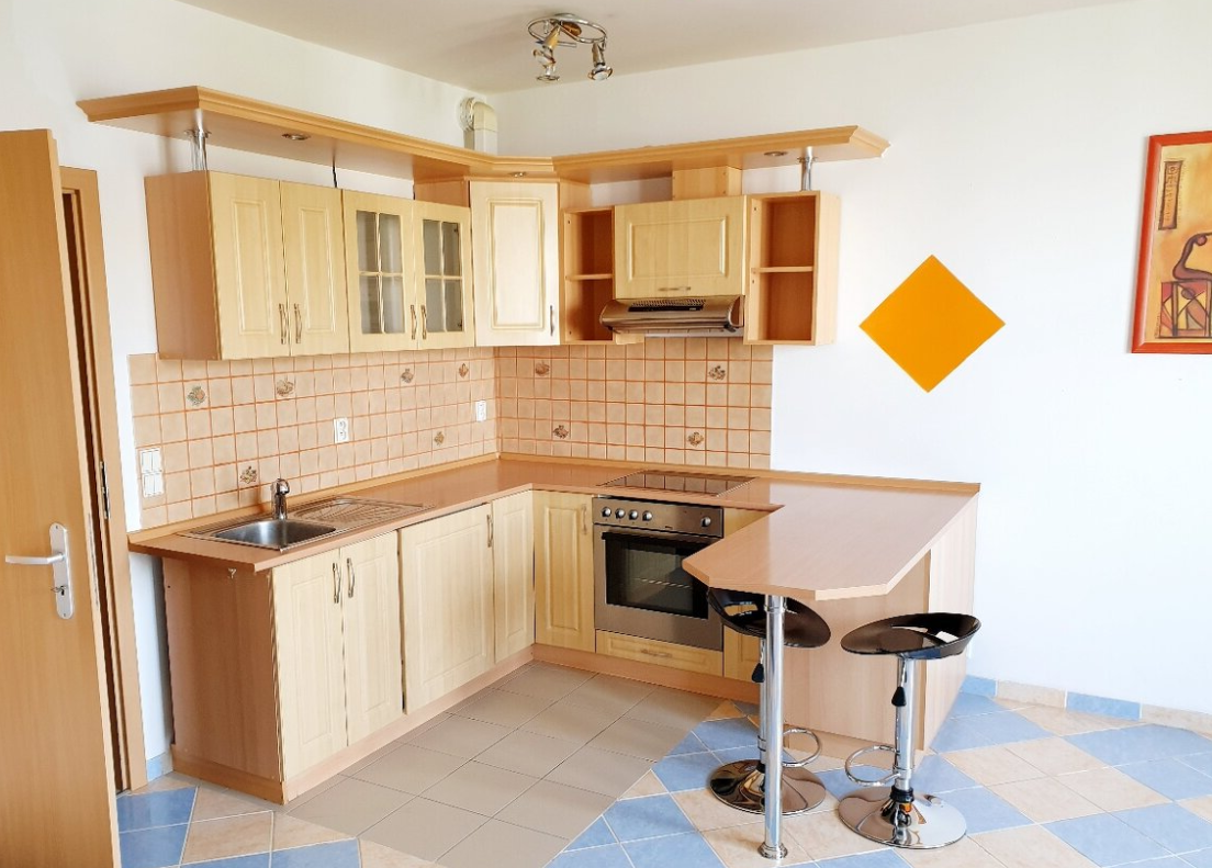 Byt je plně vybavený. K dispozici je kuchyňská linka se spotřebiči, pračka a základní nábytek.