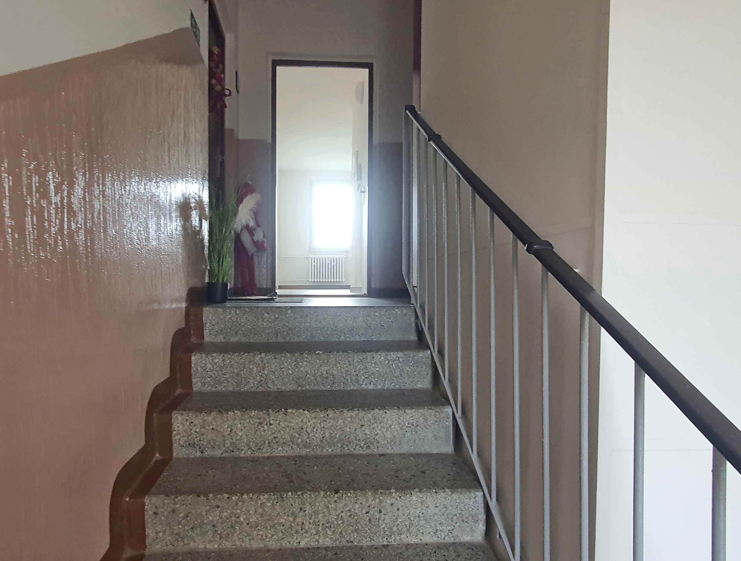 • K bytu náleží balkon v mezipatře chodby, kde si můžete vychutnat ranní kávu nebo večerní posezení.