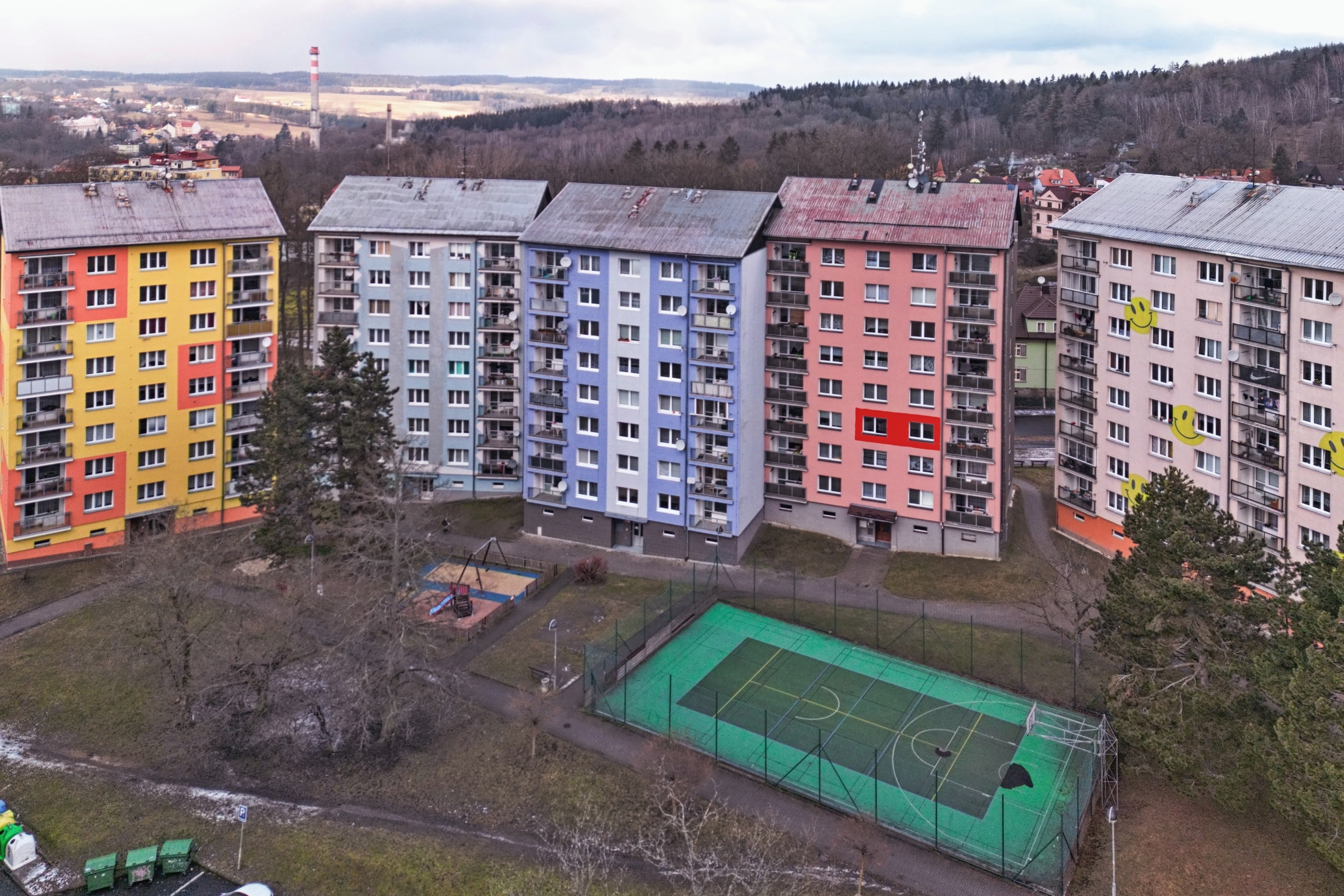 • Okolí domu nabízí veškerou občanskou vybavenost. V bezprostřední blízkosti se nachází městské parkoviště (bezplatné), dětské hřiště a městský bazén. Do obchodního centra se dostanete pěšky za pouhých 5 minut.