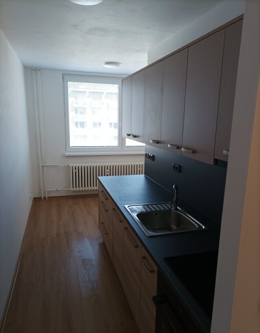 Dispozice: dva neprůchozí pokoje, kuchyně, koupelna, samostatné WC, šatna a balkon. V kuchyni je nová linka s vestavěnými spotřebiči (sklokeramická deska, trouba, digestoř, myčka nádobí).