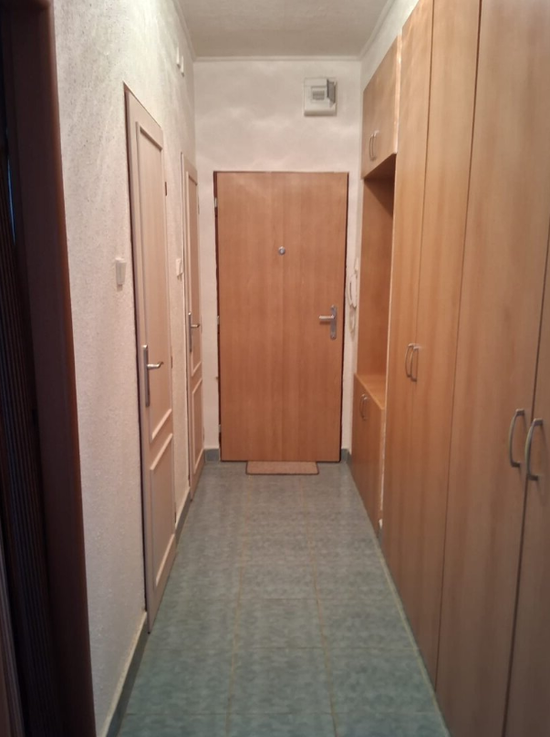 Byt je zařízený, zároveň však není problém jej vybavit vlastním nábytkem dle potřeb. Dispozice zahrnuje samostatné WC, koupelnu, kuchyň se sporákem a lednicí a prostornou chodbu s vestavěnou skříní a pračkou. V ložnici se nachází manželská postel a vestavěná skříň. Obývací pokoj je dostatečně velký a je vybaven sedačkou, stolkem a křeslem. K bytu náleží také sklep.