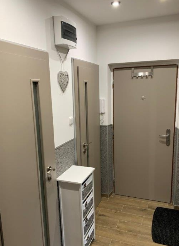 Lokalita je klidná, v blízkosti se nachází nákupní centrum i sportovní areál. Byt prošel kompletní rekonstrukcí, včetně elektroinstalace, má plastová okna a podlahy řešené kombinací dlažby a linolea. Součástí je moderní kuchyňská linka vybavená spotřebiči, jinak je byt nezařízený.