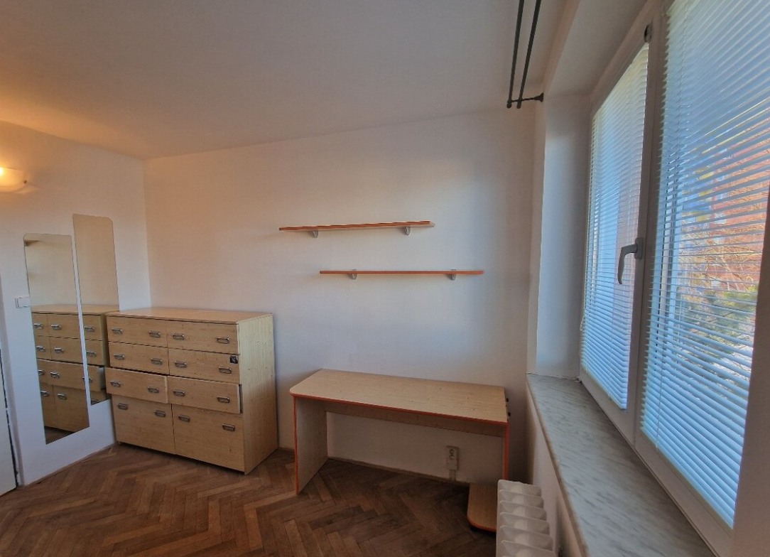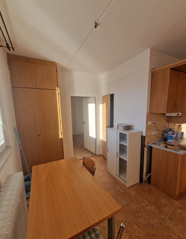 Byt je momentálně nevybavený (jen to, co vidíte na fotkách). Před nastěhováním bude položeno nové linoleum a koberec, a to po konzultaci s nájemníkem. Byt je v udržovaném stavu, koupelna a WC jsou v původním jádru.