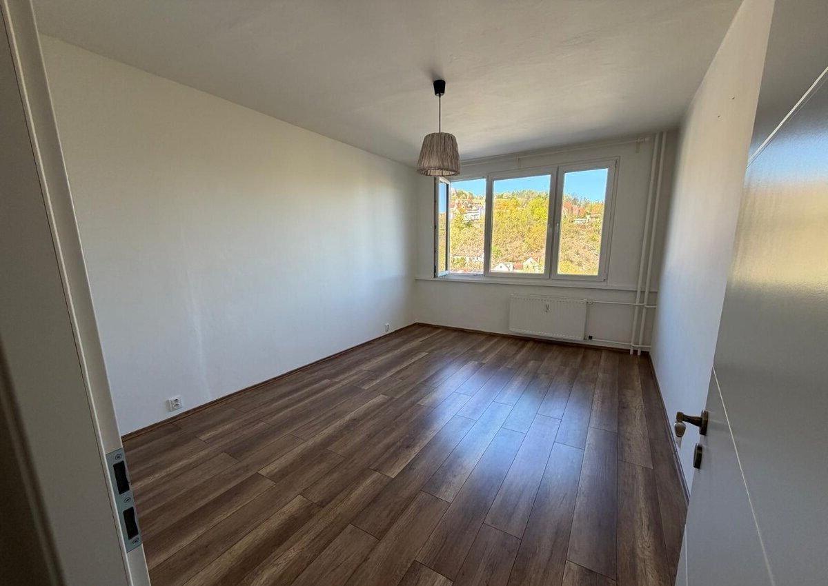 Hledá se nájemce pro dlouhodobý pronájem světlého bytu 2+1 (62 m²) ve 4. patře panelového domu s výtahem na dolním Plešivci v Českém Krumlově.