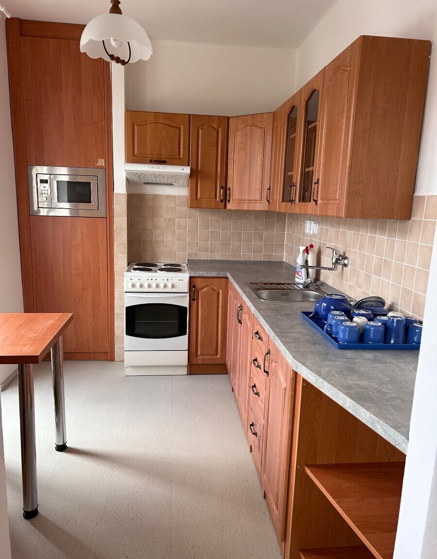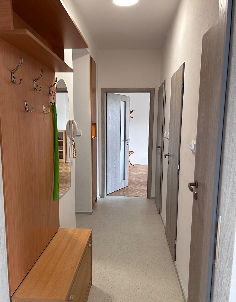 Po kompletní rekonstrukci, ve 4. patře. Plně zařízený. S balkónem a velkým sklepem. Příjemný výhled do zeleně.