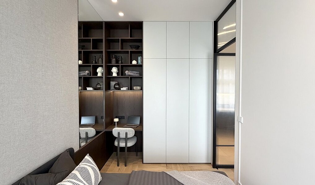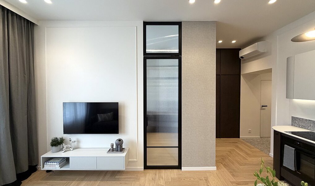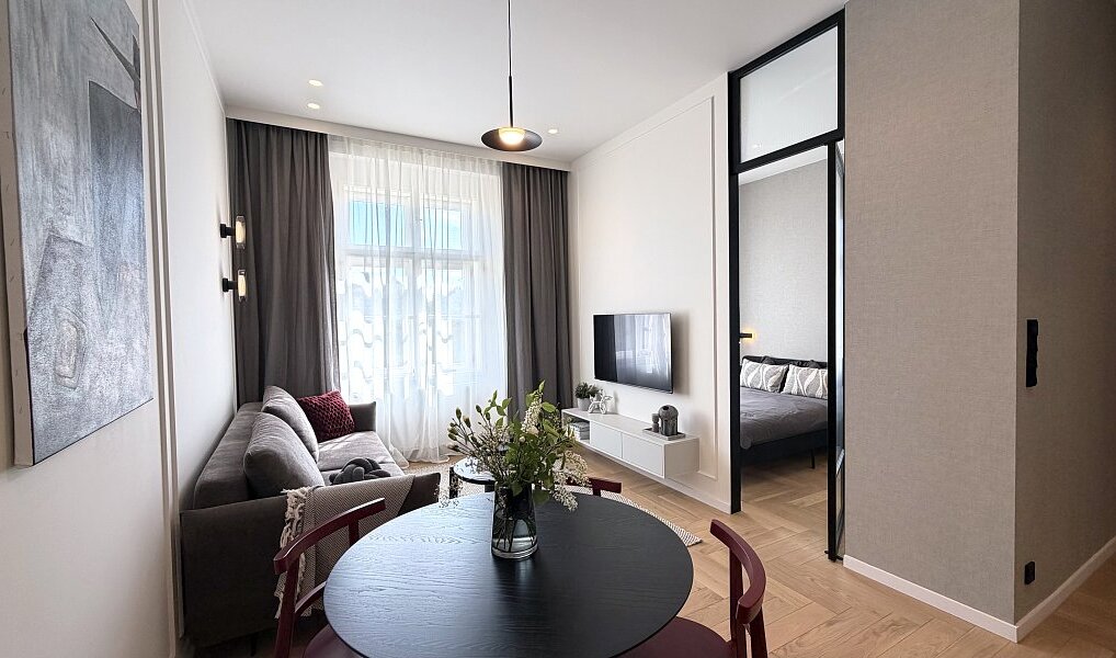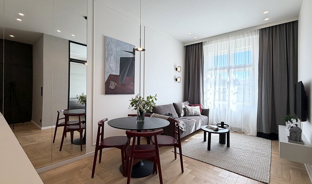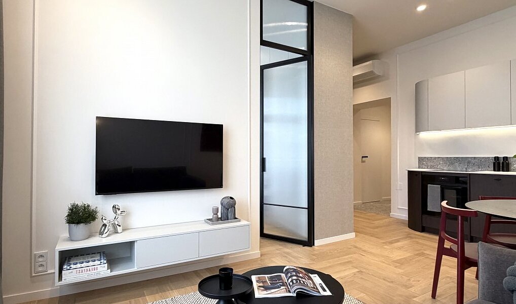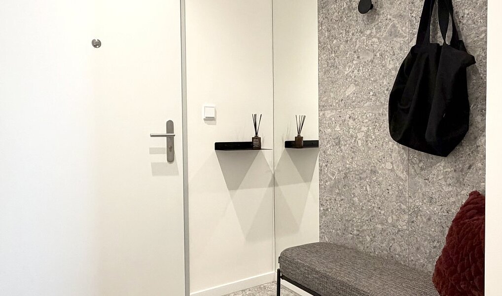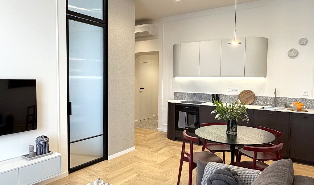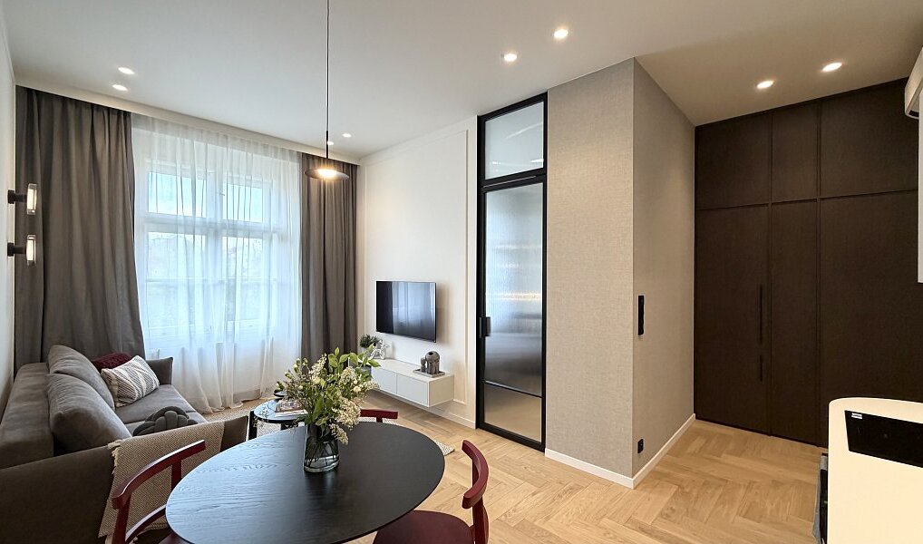 Interiér vznikl na základě architektonického návrhu a prošel kompletní renovací ve vysokém standardu s důrazem na detail, estetiku a nadčasový vzhled. Byt je zcela nový a dosud neužívaný.