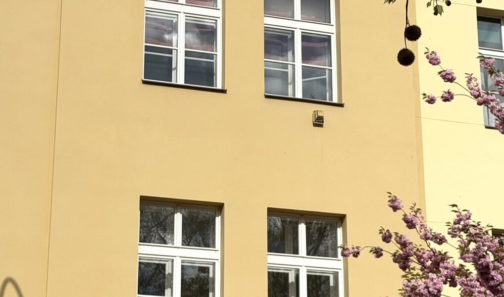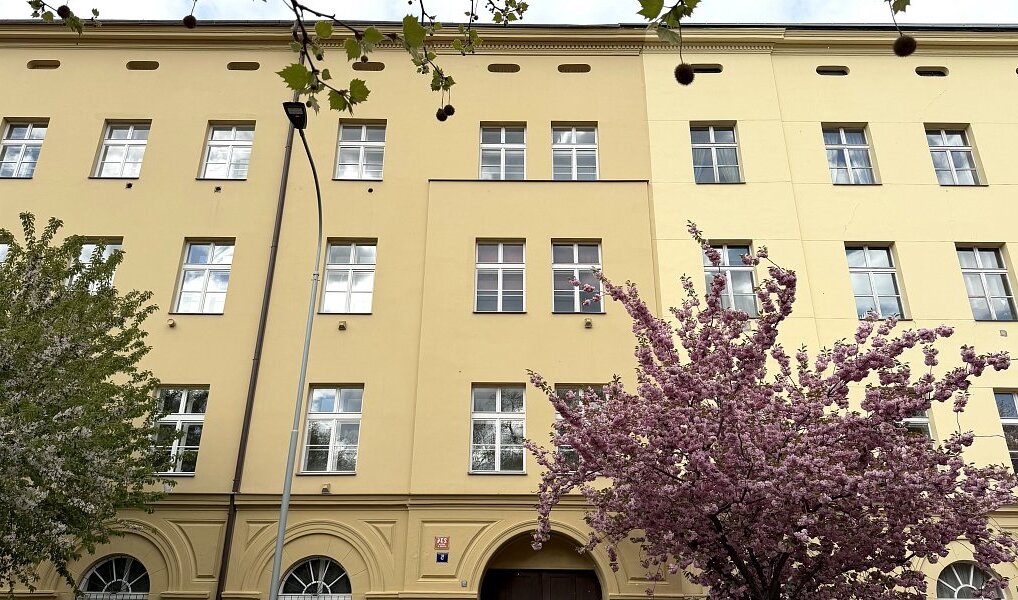 Byt se nachází ve 4. patře cihlového domu. Společné prostory procházejí závěrečnou fází kompletní rekonstrukce a brzy nabídnou reprezentativní vstup. Výtah bude dokončen v průběhu léta.