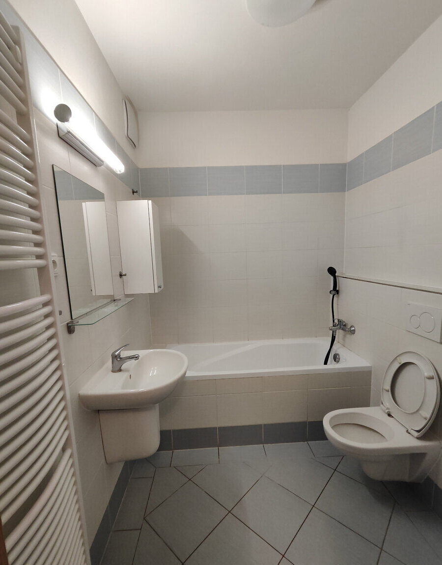 Koupelnu s WC (3,8 m²): vana; pračka není, pro vážné zájemce mohu zajistit pračku se sušičkou.