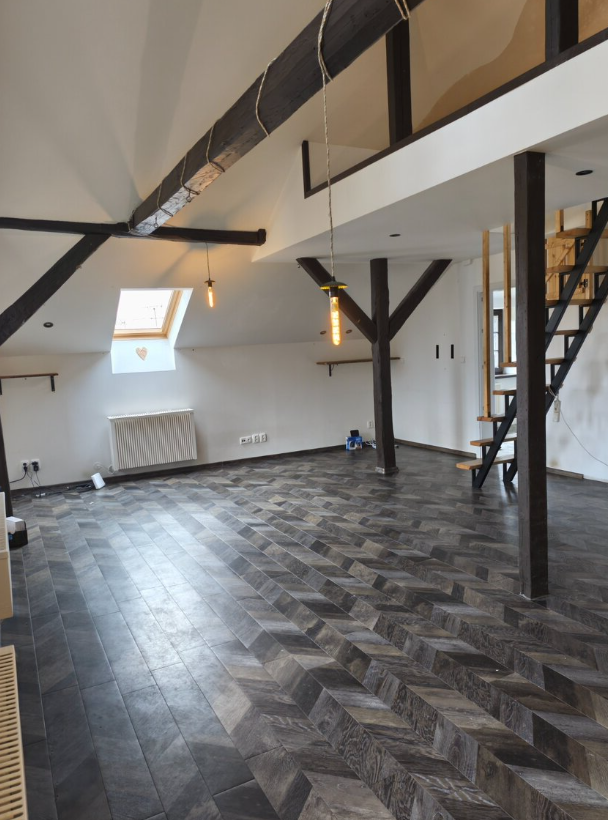 Nabízím k pronájmu standardní byt o dispozici 2+kk s vestavěným podkrovím, ten tvoří otevřený prostor o velikosti dalšího pokoje.