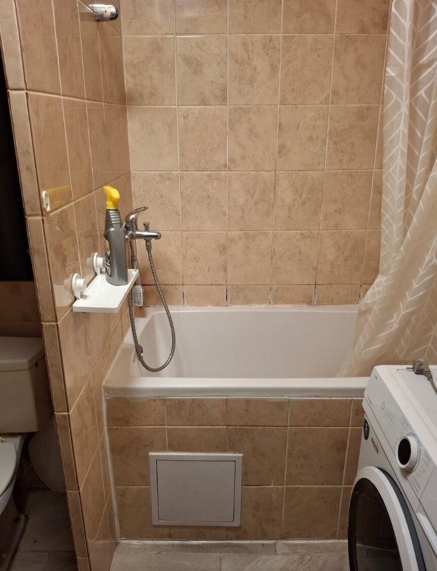 Součástí bytu je kuchyňská linka, elektrický sporák a koupelna vybavená vanou, umyvadlem a toaletou. Na podlahách je kombinace plovoucí podlahy a dlažby.