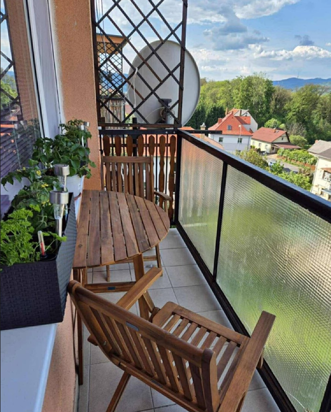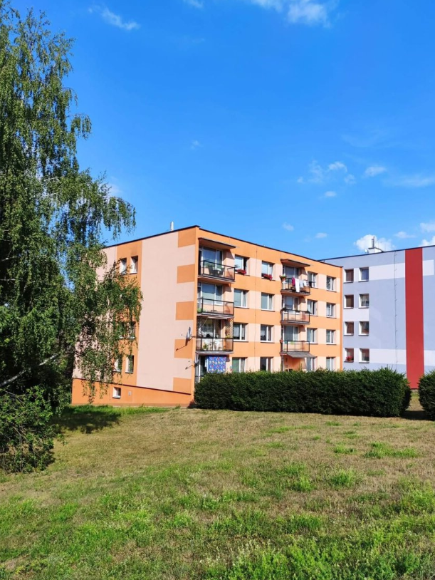 Byt se nachází ve 3. patře menšího panelového domu bez výtahu, v klidném prostředí. Součástí je balkon, ze kterého je stejně jako z ostatních místností příjemný výhled do okolí.