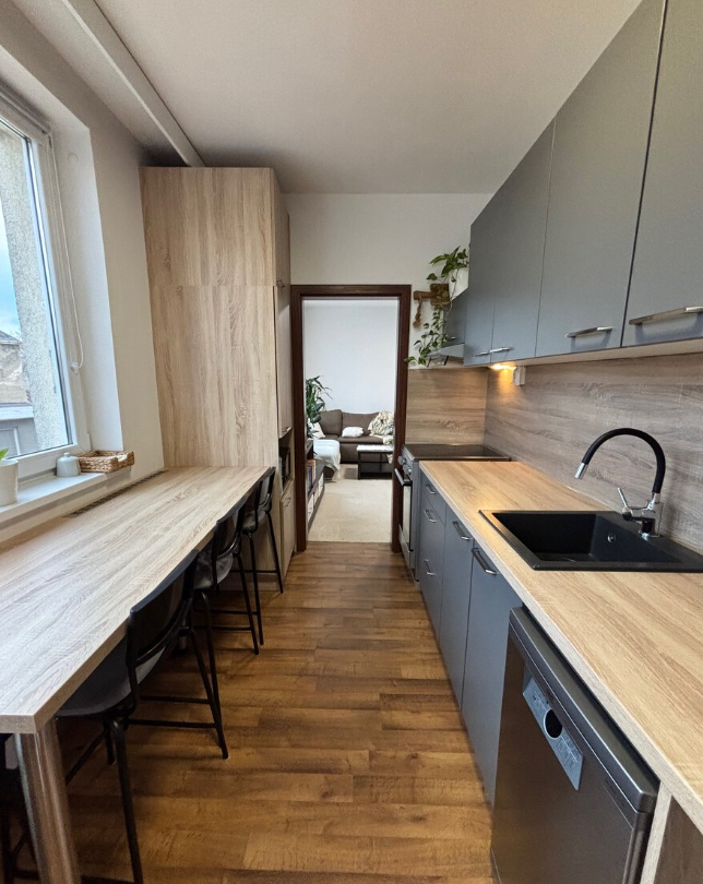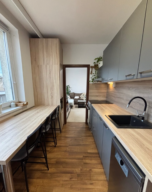 K pronájmu je světlý a udržovaný byt o dispozici 3+1 s podlahovou plochou 68 m² v Přerově, části Předmostí. Nachází se ve 3. podlaží krajního panelového domu s výtahem. Byt po renovaci nabízí klidné bydlení a prakticky řešený prostor. K dispozici jsou dva samostatné neprůchozí pokoje, prostorný obývací pokoj a oddělená kuchyně, která byla upravena tak, aby poskytovala dostatek úložného místa.