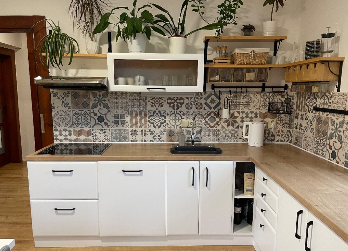 Byt bude vyklizený, zůstává kuchyňská linka včetně vestavné myčky, trouby, sklokeramické desky a lednice. Dále je možné ponechat nábytek v ložnici.