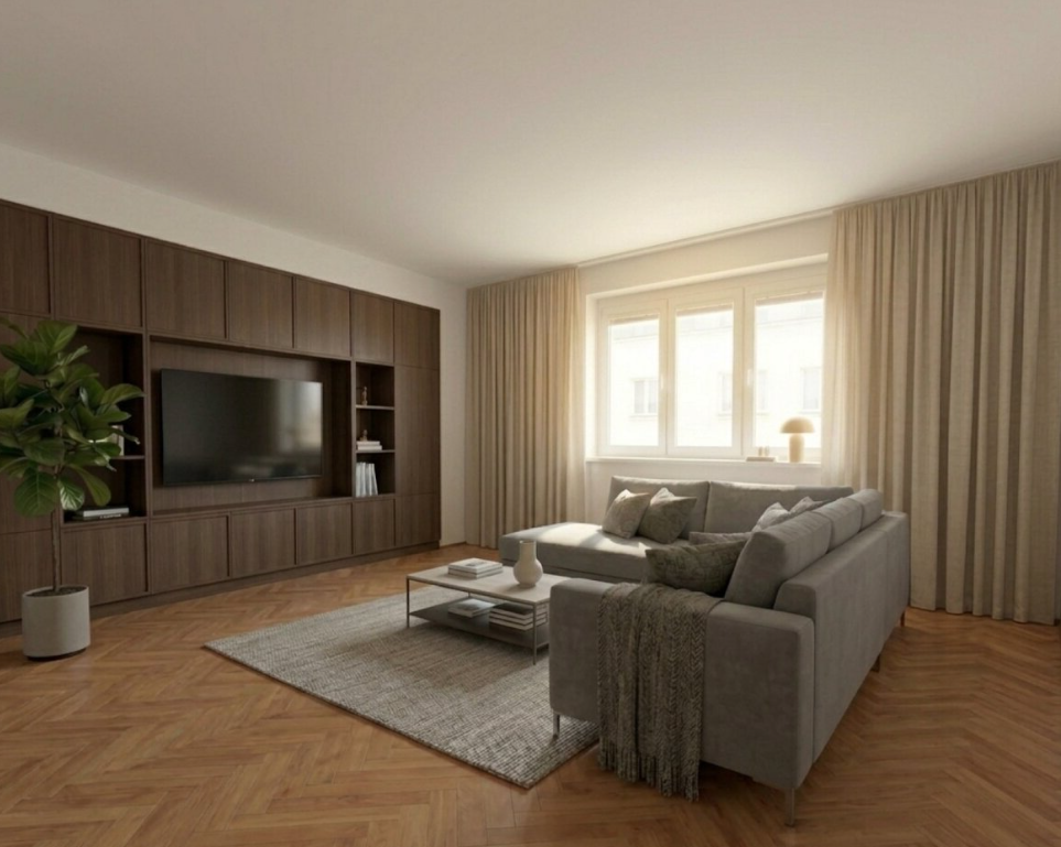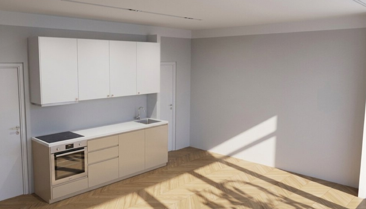 Součástí bytu bude nová kuchyňská linka včetně spotřebičů. Uvedené fotografie jsou pouze ilustrační, vycházejí však z aktuálního stavu a dispozic bytu.