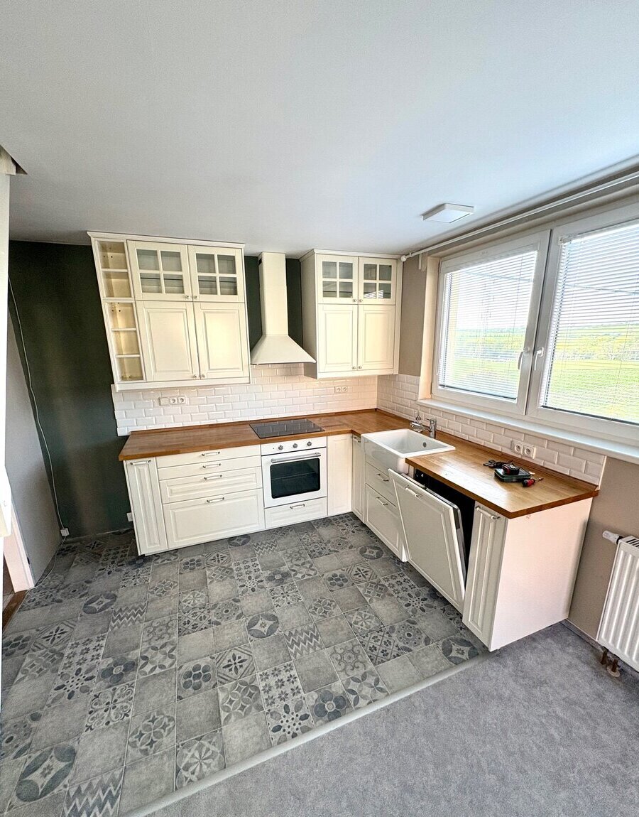 Byt je vybaven kuchyňskou linkou s myčkou a indukční varnou deskou.