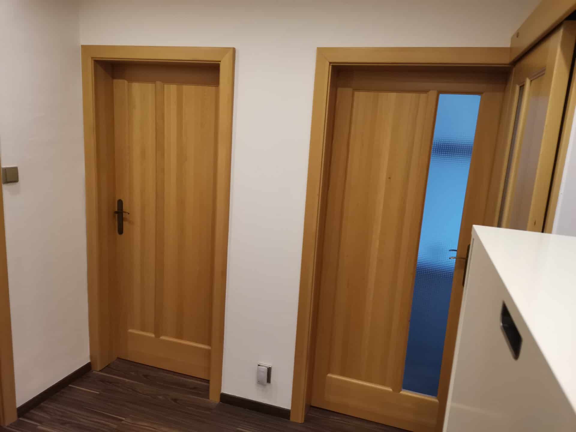 b)koupelna - nový 02/2026 box se sprchou, umyvadlo se skříňkou a otočnou vodovodní baterií, skříňka, elektrický topný bílý žebřík. c)kuchyň/obývák je k dispozici velký rozkládací stul, možno ponechat: úložné skříňky, prosklená vitrína, dále - audio rozvod na domácí kino, rozvod TV a SAT kabel. signálu do ložnice i dětského pokoje, lustry v kuchyni, jídelně a obývacím pokoji, bodové osvětlení na chodbě, koupelna a WC , včetně sníženého kazetového stropu na chodbě, WC a koupelně, WIFI – optický kabel internet cca. 500/500 Mbss, vlastní satelit na střeše domu. d)Balkon – je celkově zasklený, včetně žaluzií, dlažba. )Součástí bytu je i vstupní chodba a samostatná zděná šatna a nový domácí telefon. Dveře z masivu (buk) ve všech místnostech, včetně vchodových dveří a garnýže ve všech místnostech. Na chodbě je botník v bytě je nové ústřední topení s čidlem a dálkovým odpočtem na spotřebovanou energii, byt je trvale udržovaný, čistý, hygienicky bez závad, v OV, bez právních vad a břemen.