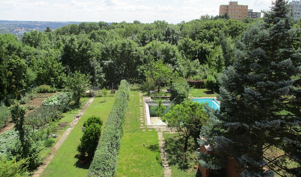 První patro: čtyři neprůchozí pokoje, chodba, koupelna a WC. Suterén: sklepní prostory. Zahrada (cca 290 m²) je samostatná, oplocená po stranách, s betonovým bazénem a výhledem do zeleně; zatravněná.